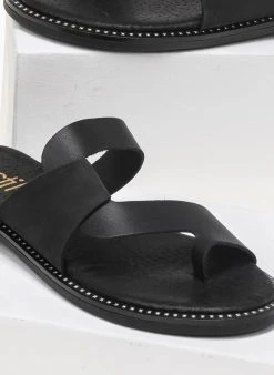 The Fashion Project Σανδάλια δερμάτινα με λουράκια και Strass Estil – Μαύρο