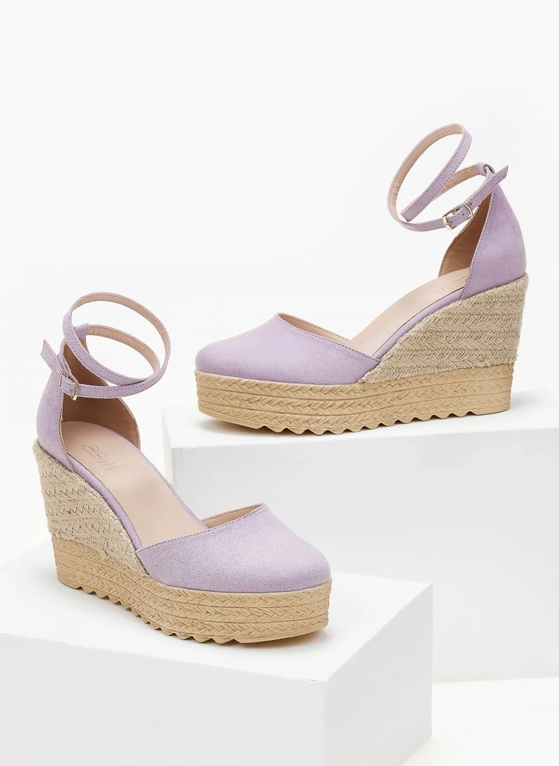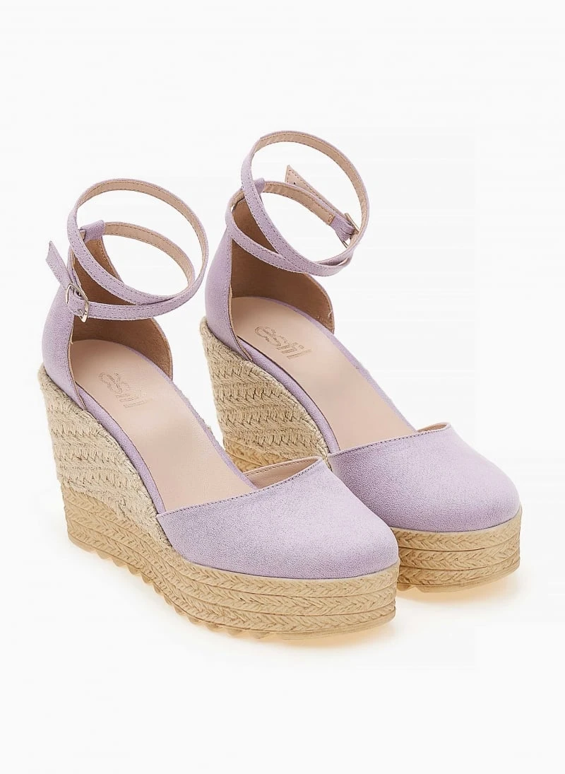 Πλατφόρμες Estil suede με λεπτομέρεια σχοινί στη σόλα. Δένουν με μπαρέτα στο ύψος του αστραγάλου.Ελληνικής κατασκευής.