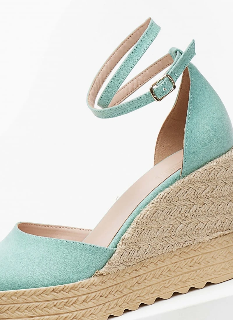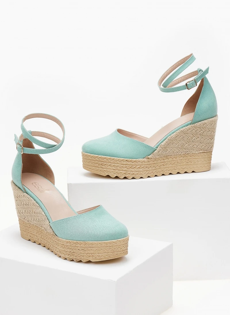 Πλατφόρμες Estil suede με λεπτομέρεια σχοινί στη σόλα. Δένουν με μπαρέτα στο ύψος του αστραγάλου.Ελληνικής κατασκευής.