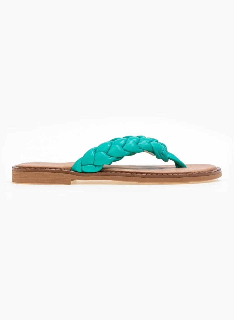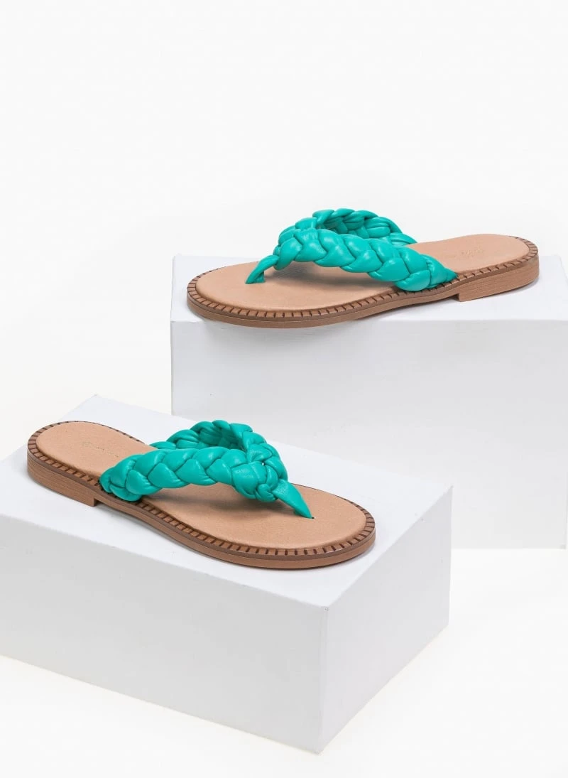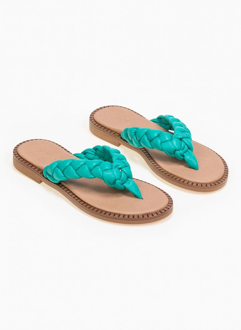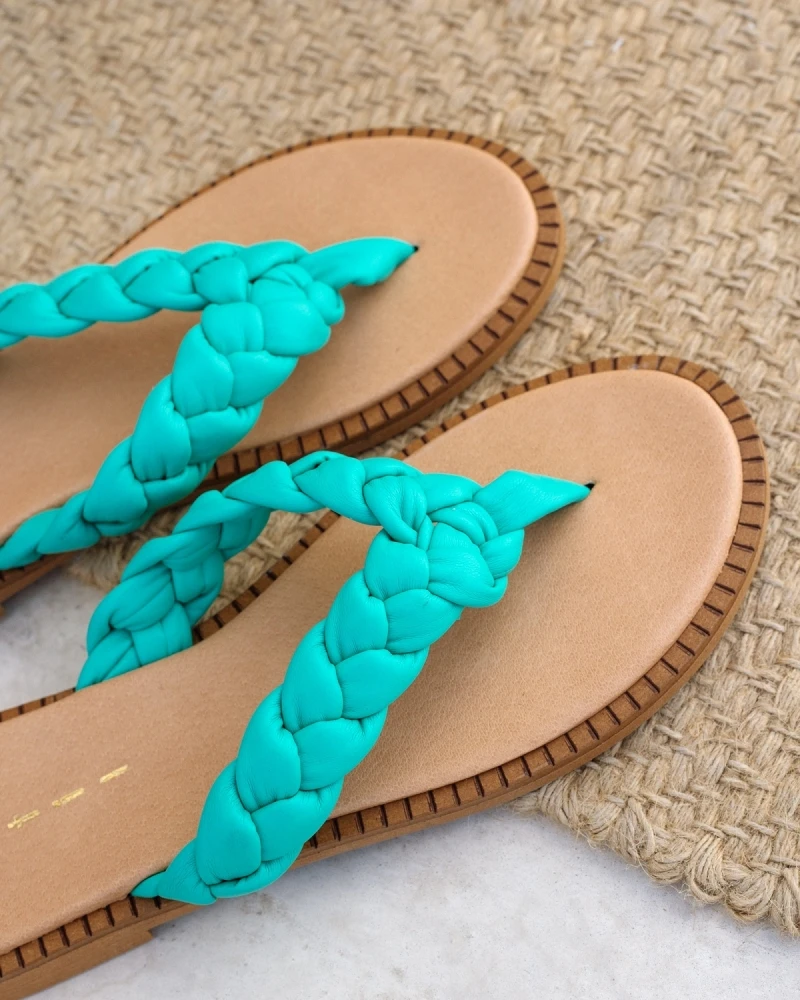 Estil φλατ σανδάλια με φαρδιές κοτσίδες. Ο πάτος είναι τεχνόδερμα με ενίσχυση. Ελληνικής κατασκευής.