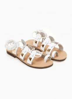 Σανδάλια δερμάτινα με κορδόνια και τρουκς Estil – Λευκό