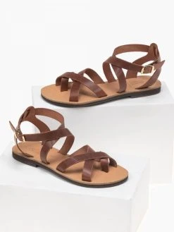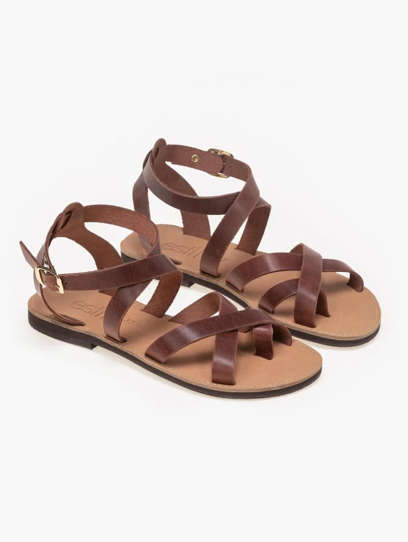 Estil δερμάτινο σχέδιο με χιαστί σχέδιο. Δένουν με λουράκι στο ύψος του αστραγάλου.