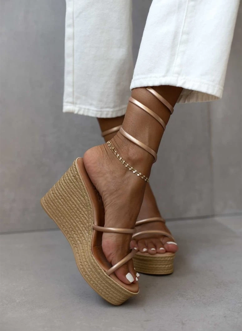 Πλατφόρμες δερμάτινες ESTIL με έλασμα στη γάμπα. Δερμάτινος πάτος με ενίσχυση. Ελληνικής κατασκευής.