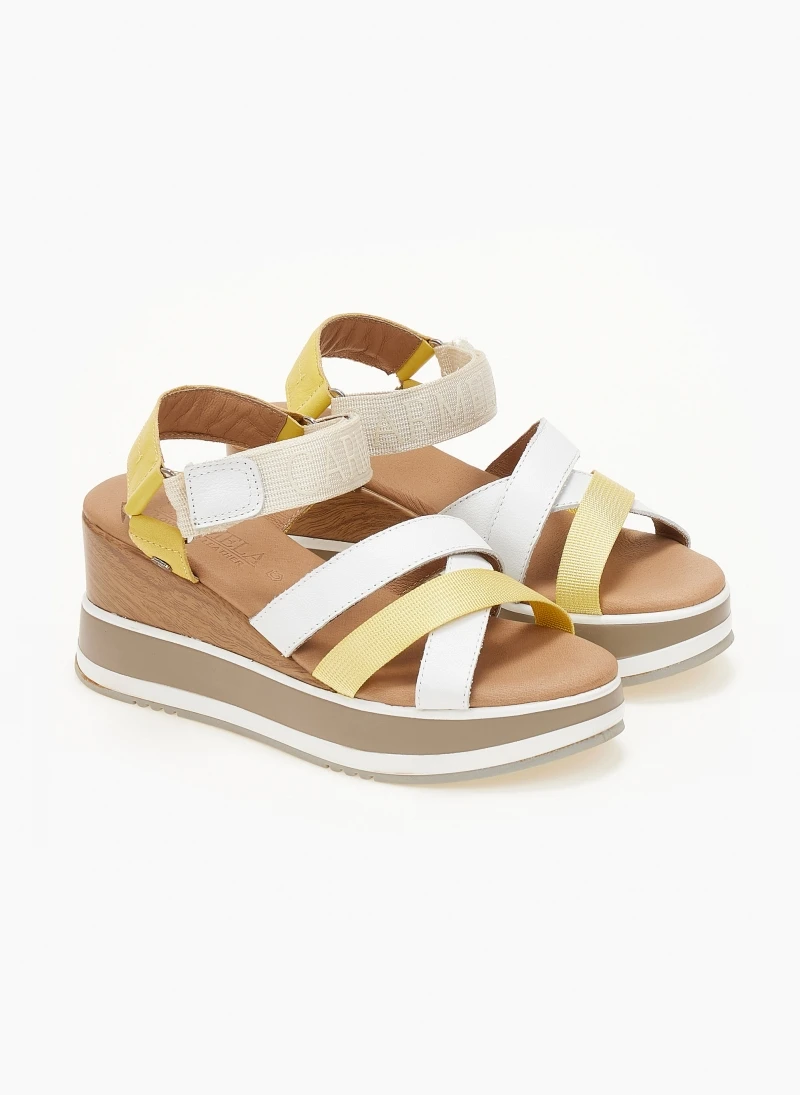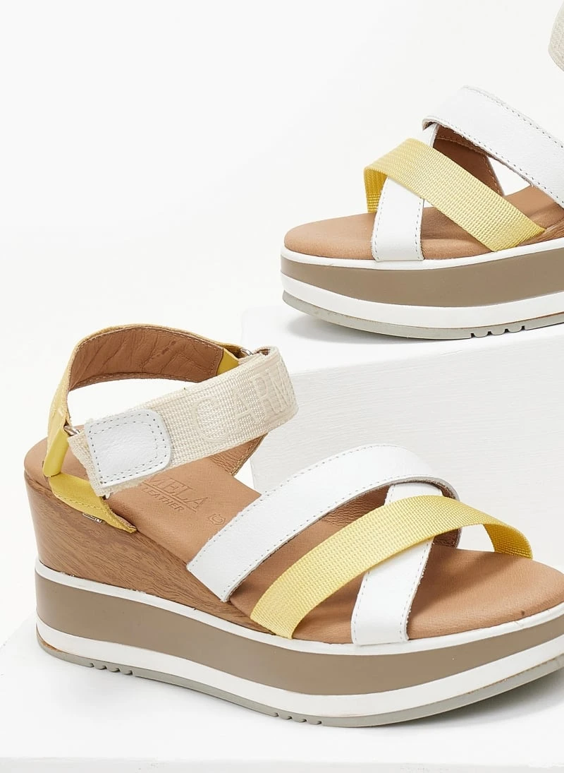 Πλατφόρμες με δερμάτινα χιαστί λουράκια και υφασμάτινο velcro αυτοκόλλητο. Διαθέτει δερμάτινο πάτο με ενίσχυση. Η σόλα είναι μαλακή.