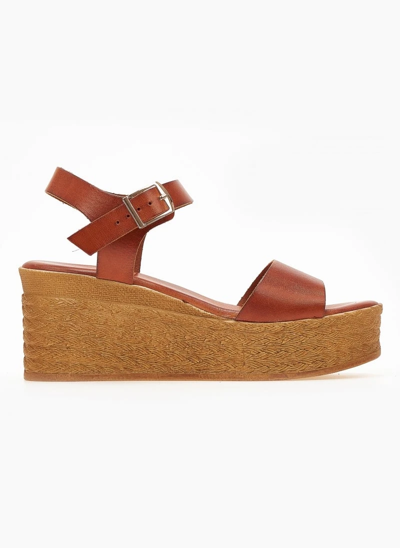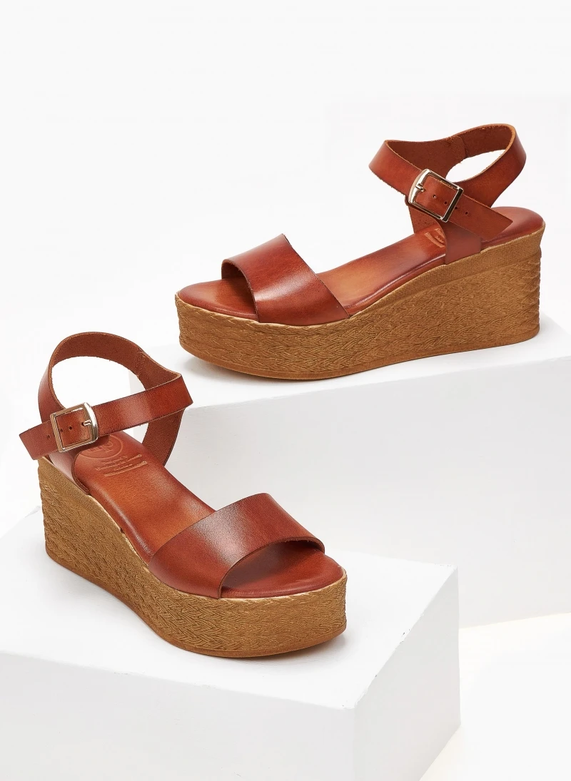 Πλατφόρμες δερμάτινες TFP. Δένουν στο ύψος του αστραγάλου με λουράκι. Δερμάτινος πάτος με ενίσχυση. Ελληνικής κατασκευής.