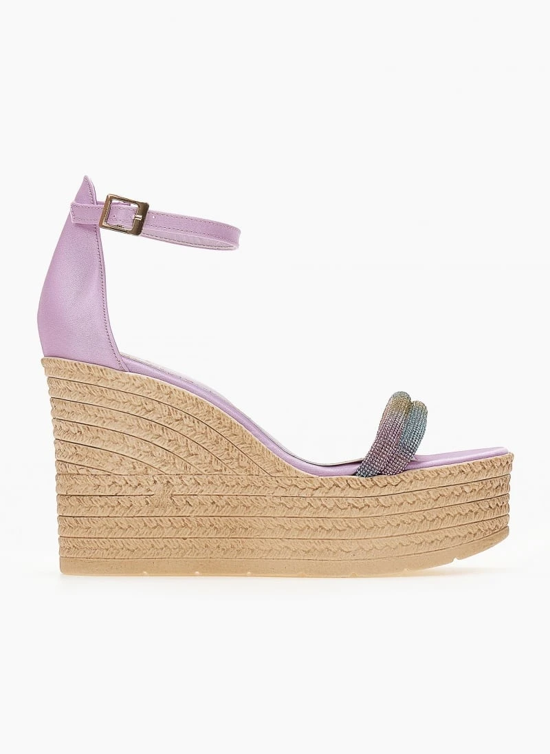 Πλατφόρμες πέδιλα TFP με διπλή σειρά strass. Έχουν κλειστή φτέρνα.Δένουν με μπαρέτα σο ύψος του αστραγάλου. Ελληνικής κατασκευής.