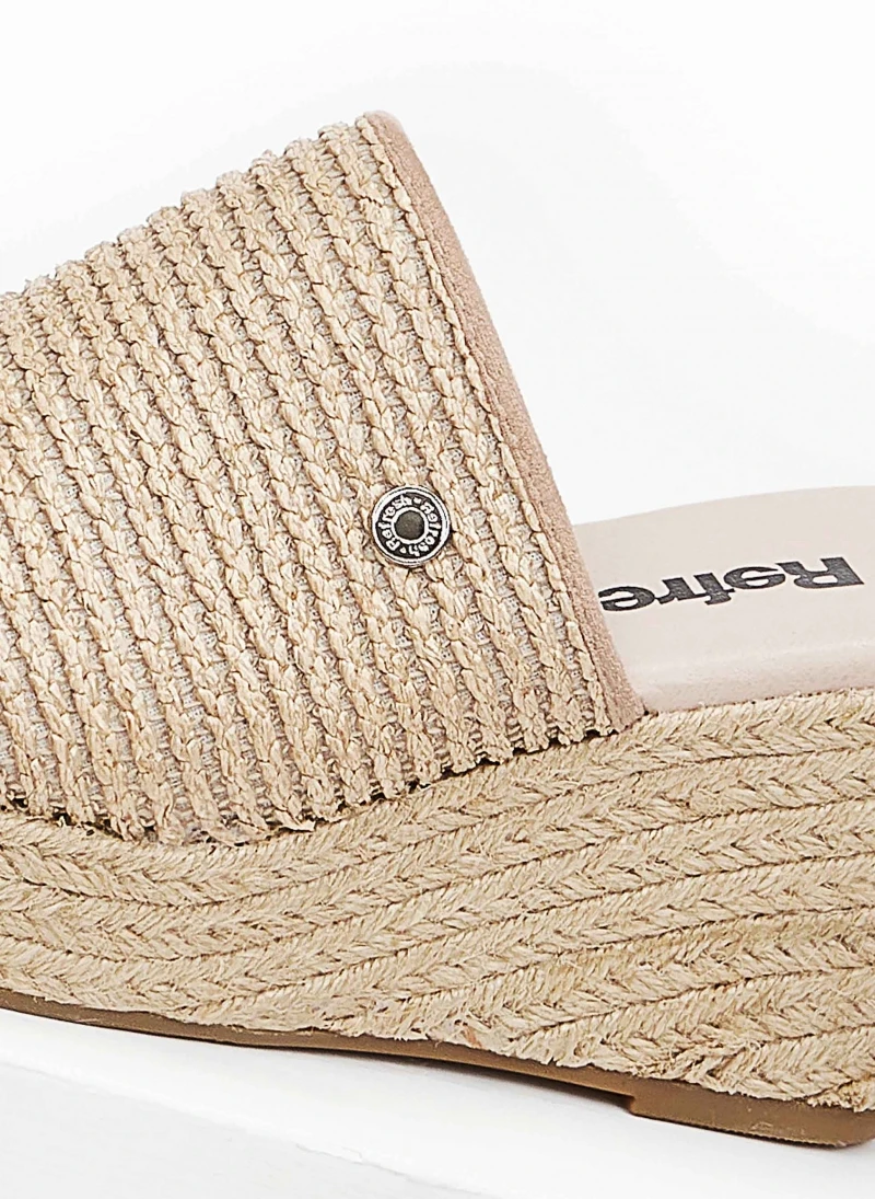 Πλατφόρμες με φαρδιά ψάθινη φάσα.Έχουν ψηλή σόλα από σχοινί.Ο πάτος είναι μαλακός με ενίσχυση.Vegan approved.