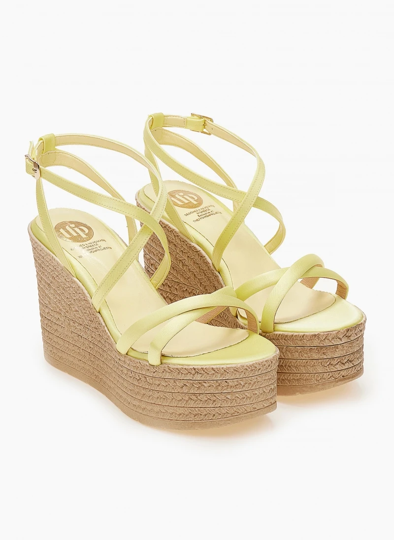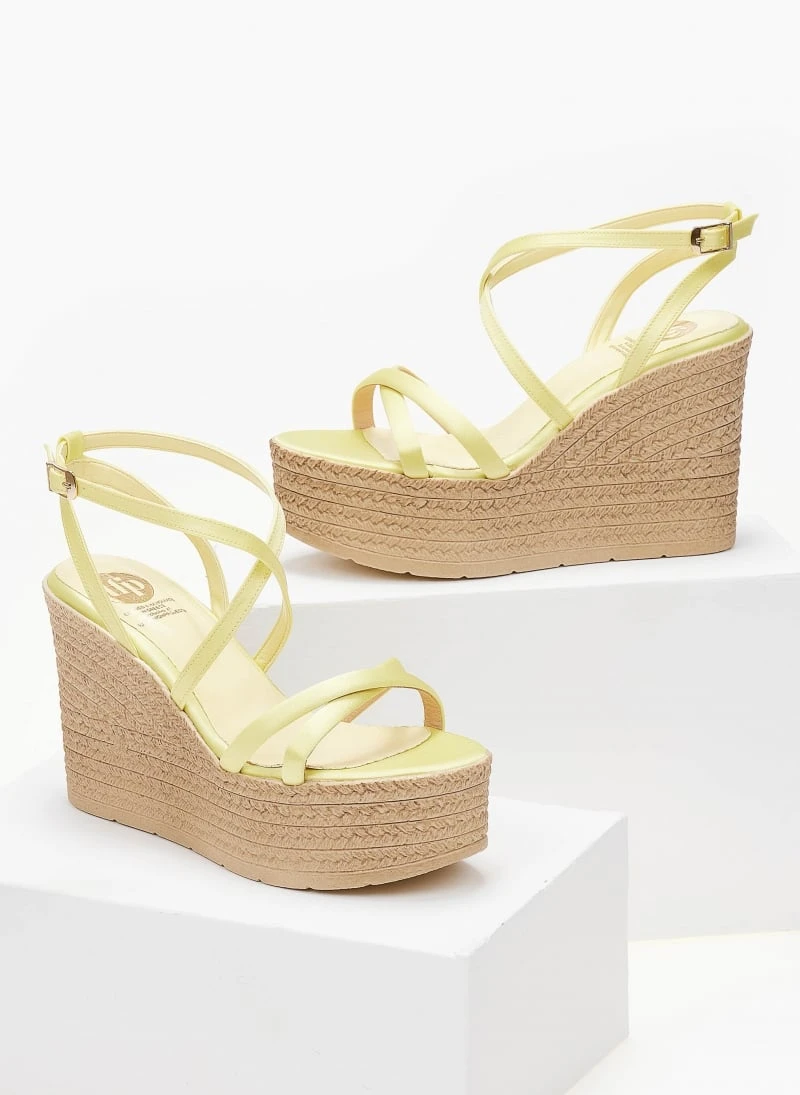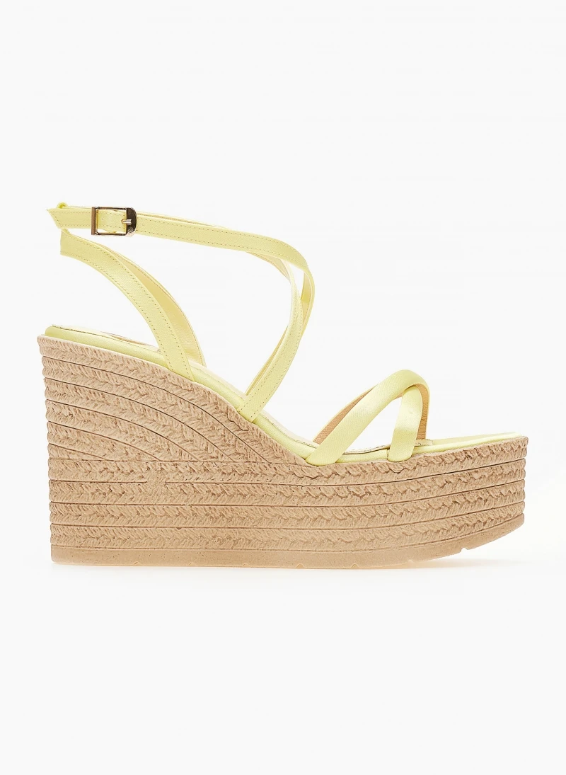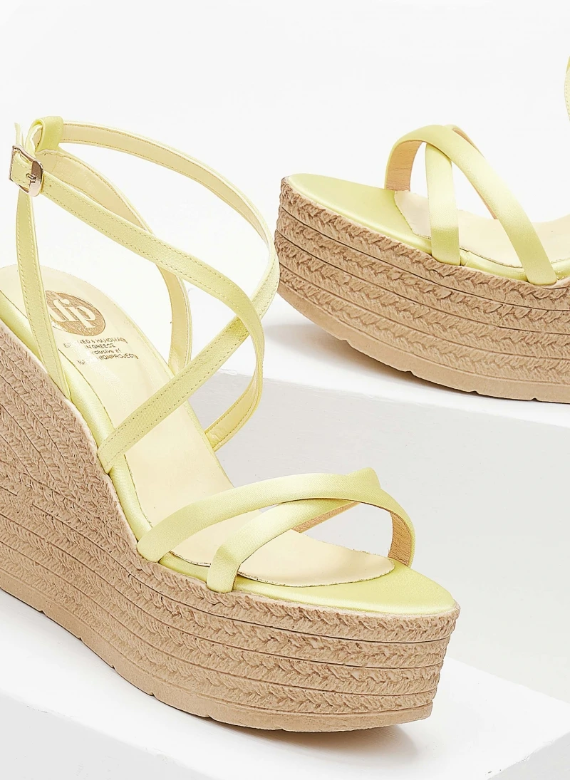Πλατφόρμες πέδιλα σατέν με χιαστί λουράκια.Δένουν στο πλάι.Ελληνικής κατασκευής.