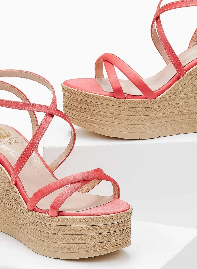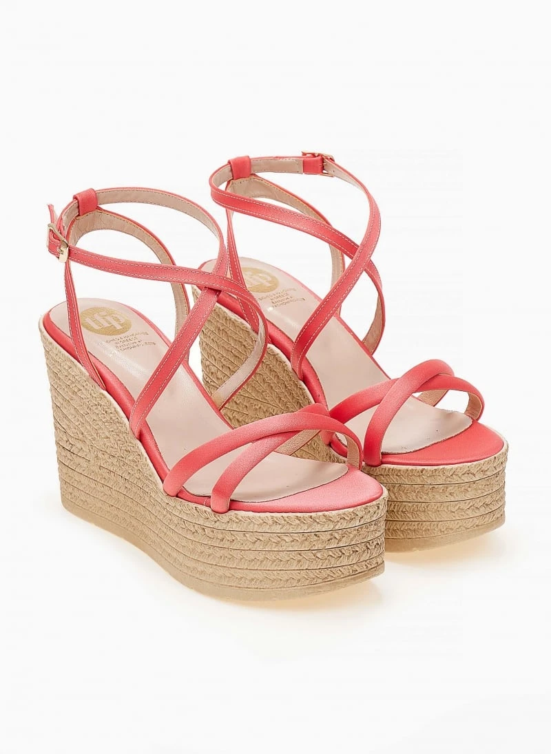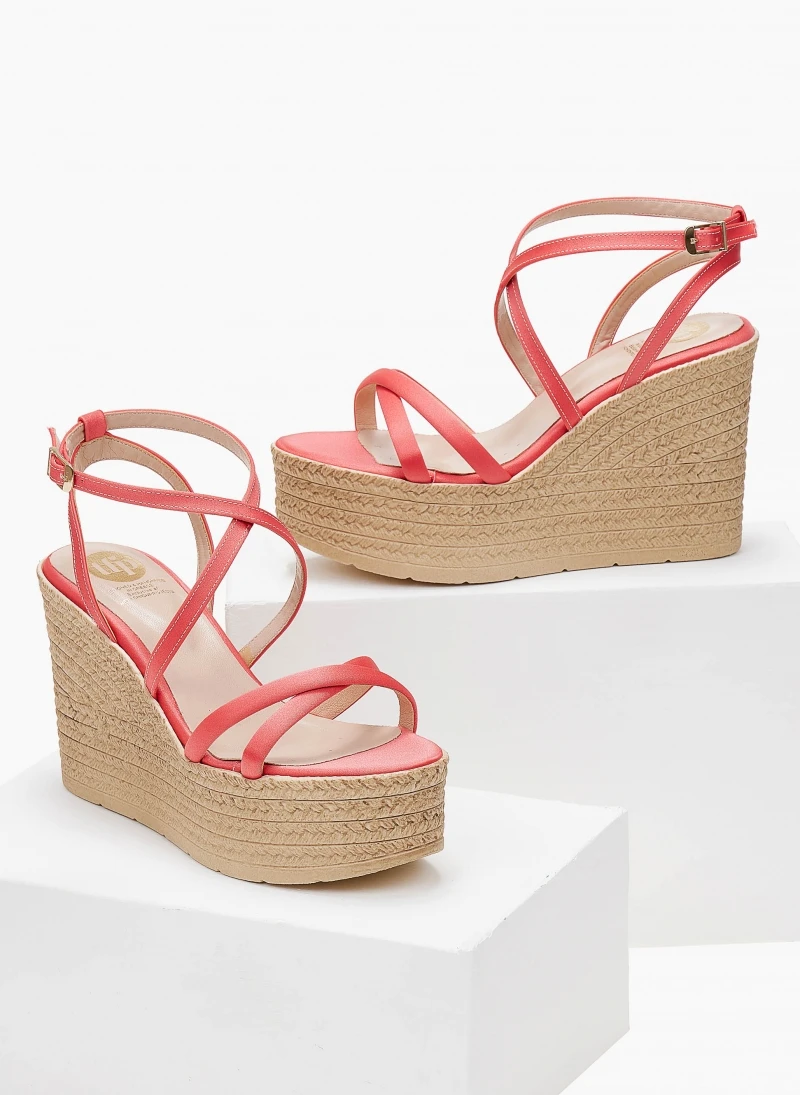 Πλατφόρμες πέδιλα σατέν με χιαστί λουράκια.Δένουν στο πλάι.Ελληνικής κατασκευής.