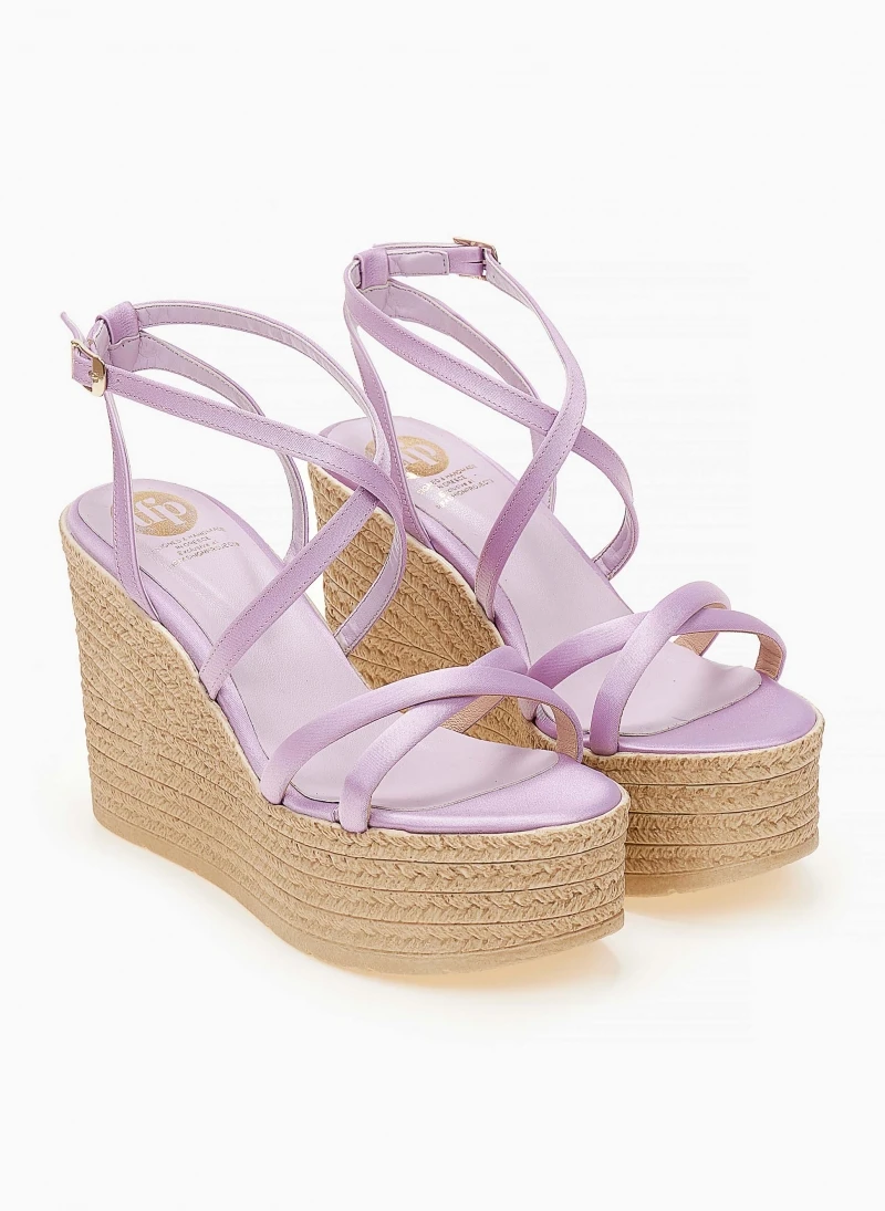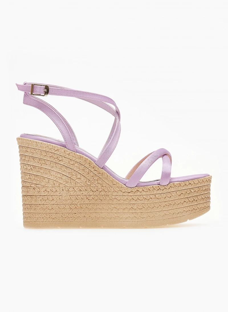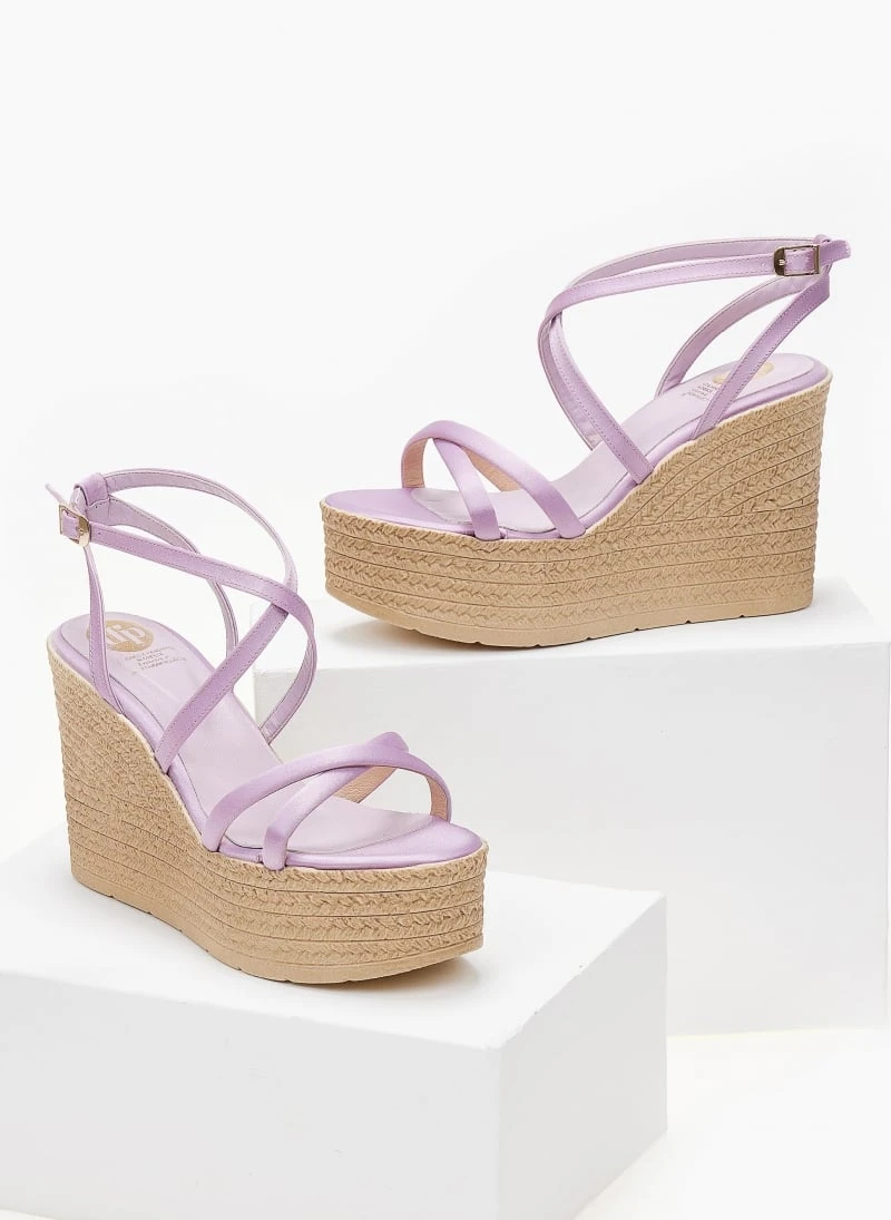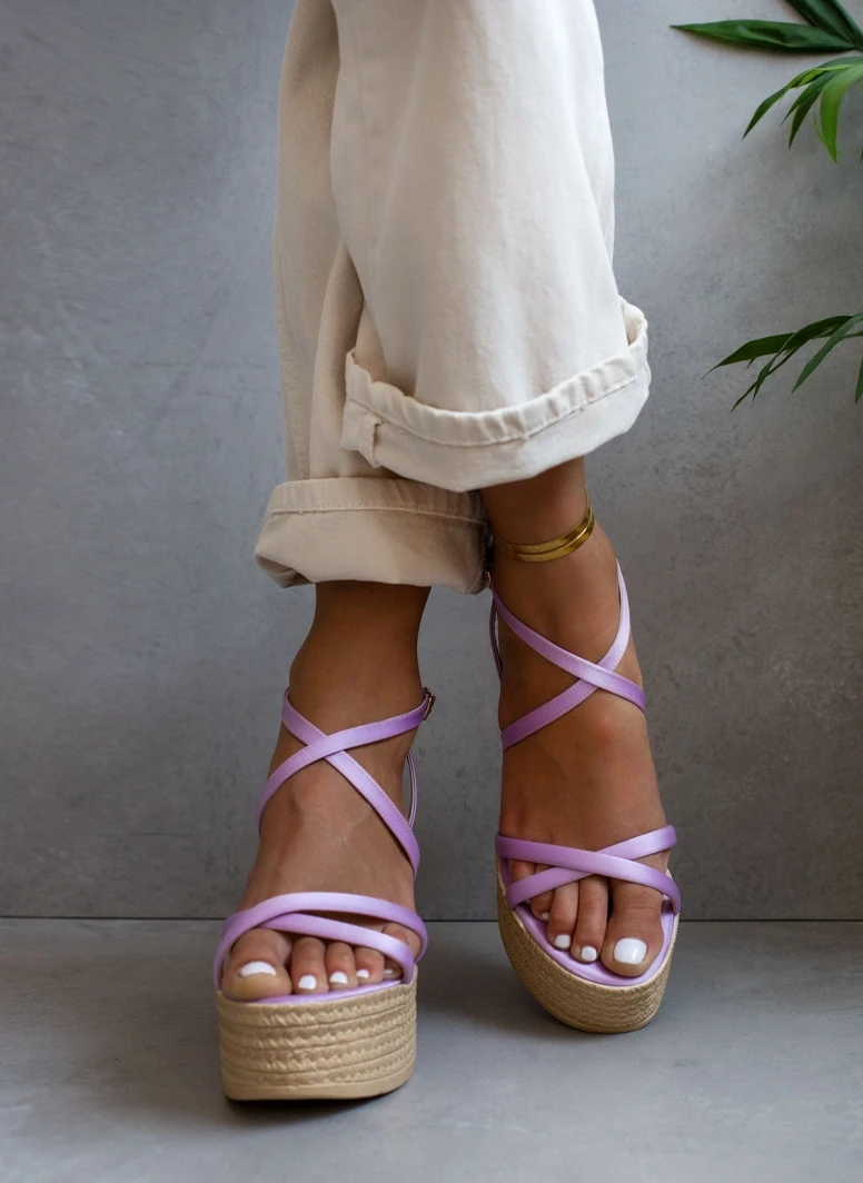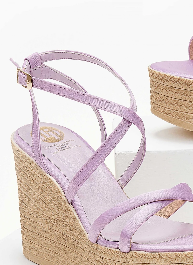 Πλατφόρμες πέδιλα σατέν με χιαστί λουράκια.Δένουν στο πλάι.Ελληνικής κατασκευής.
