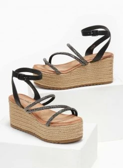 The Fashion Project Πλατφόρμες με σχοίνινη σόλα και στρας – Μαύρο