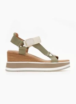 Πλατφόρμες δερμάτινες με Velcro λουράκι Carmela 68448 – Χακί