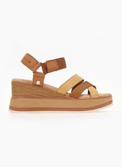 Πλατφόρμες δερμάτινες με χιαστί λουράκια Carmela 68471 – Κάμελ