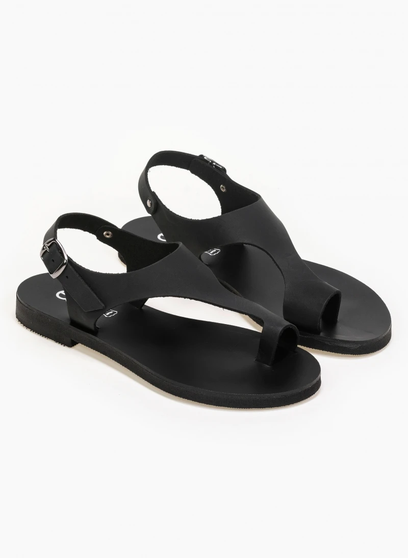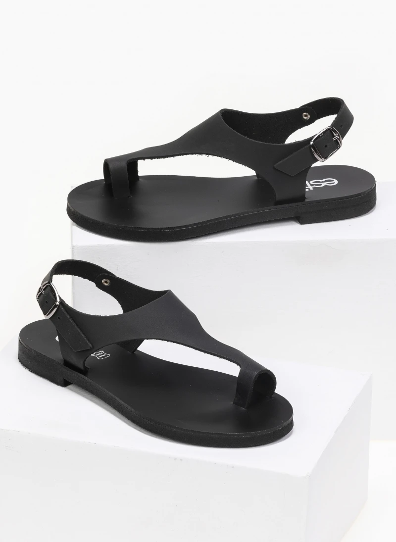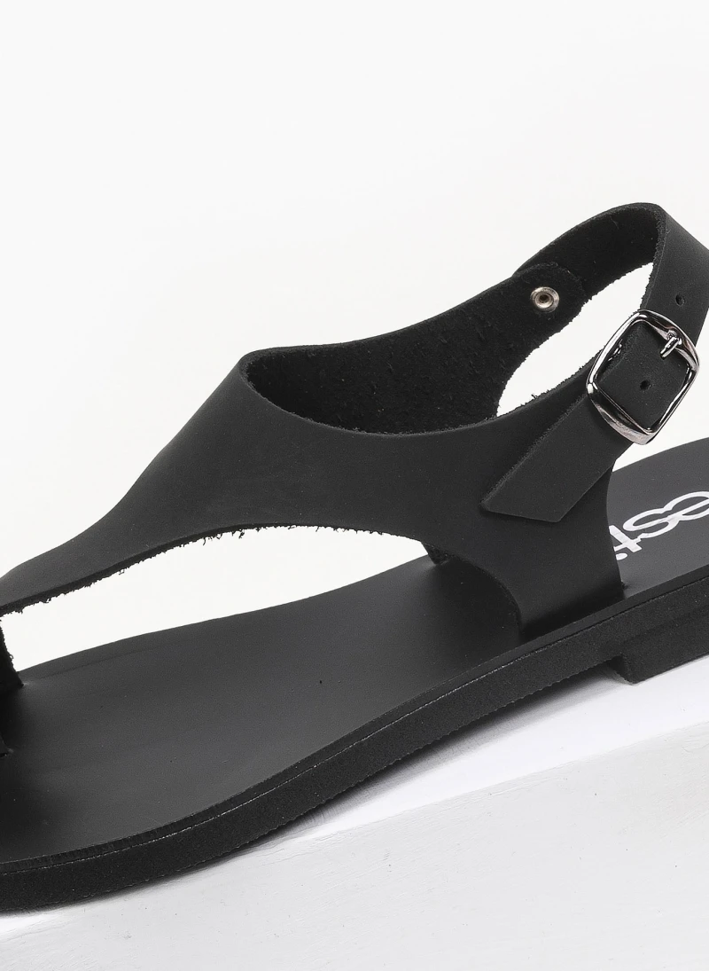Estil δερμάτινα ίσια πέδιλα. Δένουν στο πλάι. Ελληνικής κατασκευής, χειροποίητα.