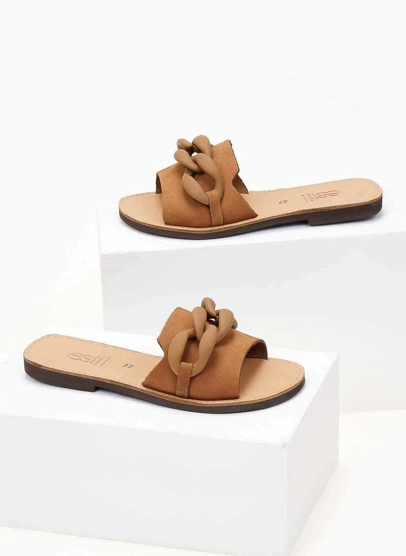 Σανδάλια nubuck Estil με φαρδιά φάσα. Έχουν oversized ματ κοκάλινη αλυσίδα. Ελληνικής κατασκευής,χειροποίητα.