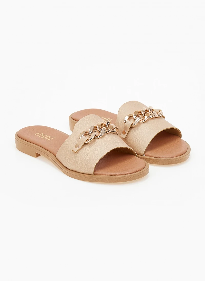 Δερμάτινα Estil σανδάλια με φαρδιά φάσα και αλυσίδα. Ο πάτος είναι μαλακός με ενίσχυση. Ελληνικής κατασκευής, χειροποίητα.