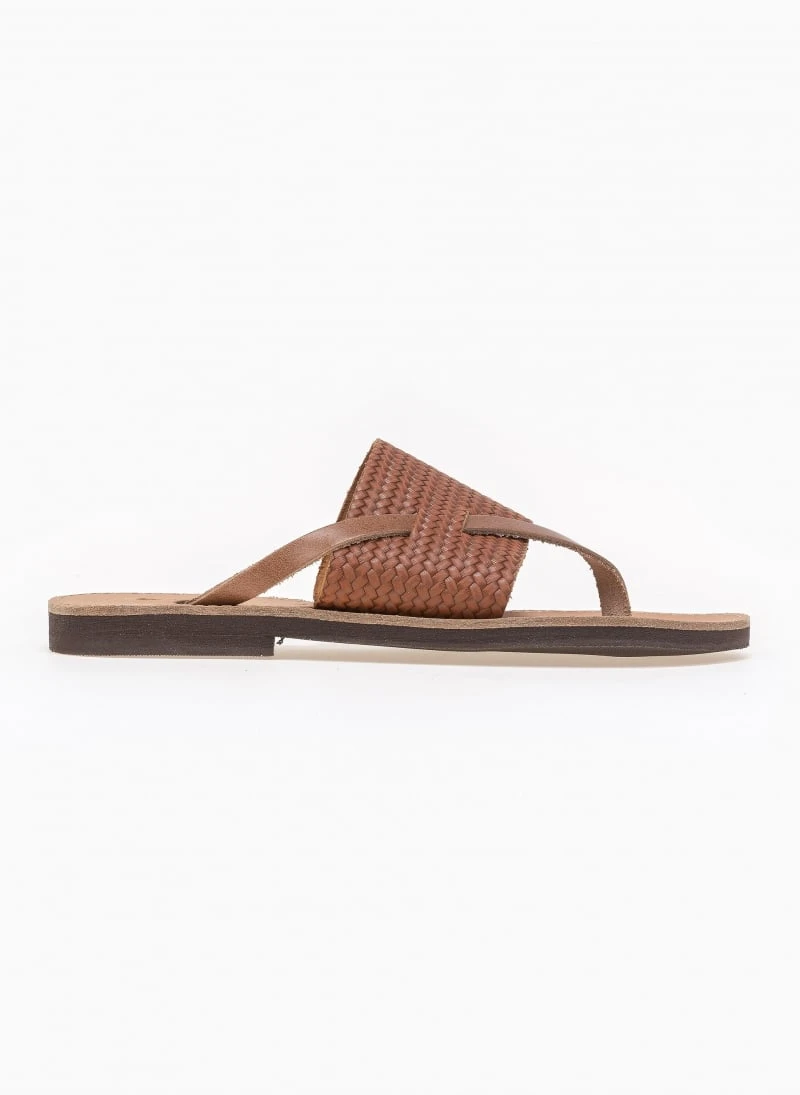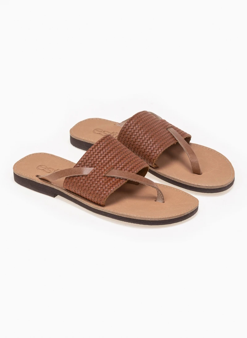 Estil δερμάτινα σανδάλια με φαρδιά φάσα και pattern ψάθα. Ελληνικής κατασκευής, χειροποίητα.