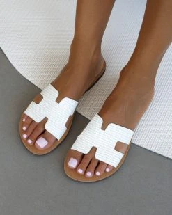 Estil δερμάτινα σανδάλια με φαρδιά φάσα και ανάγλυφο pattern. Eλληνικής κατασκευής, χειροποίητα.