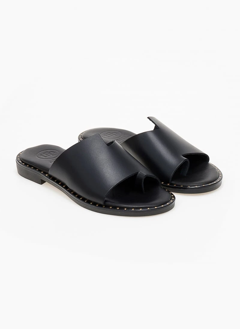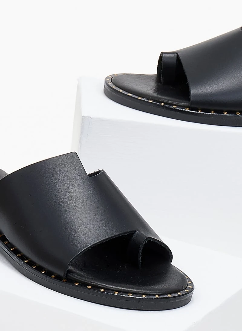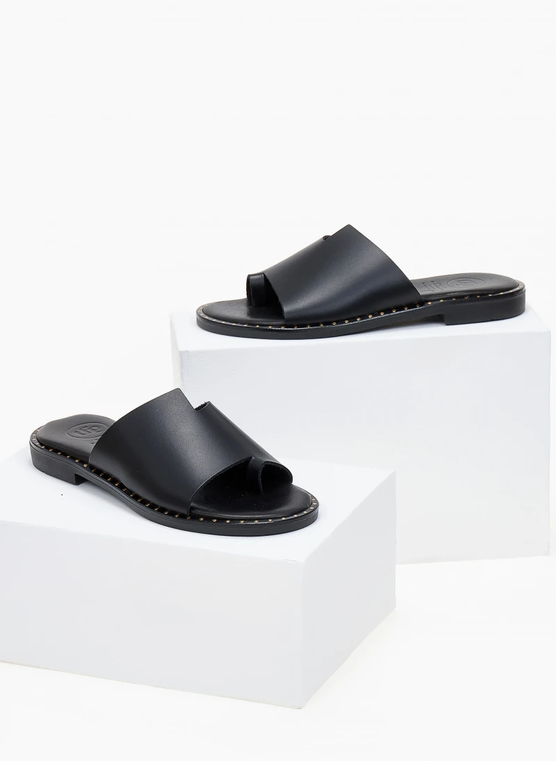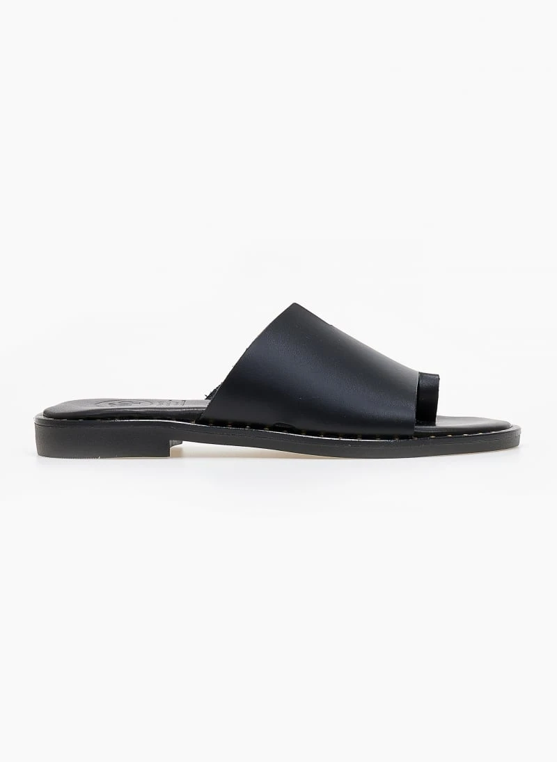 Σανδάλια δερμάτινα TFP με φαρδιά φάσα και άνισο τελείωμα. Ο πάτος είναι δερμάτινος με ενίσχυση. Έχουν λεπτομέρεια μεταλλικό χρώμα περιμετρικά της σόλας. Ελληνικής κατασκευής.