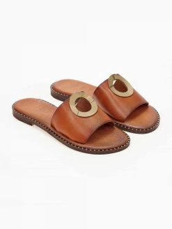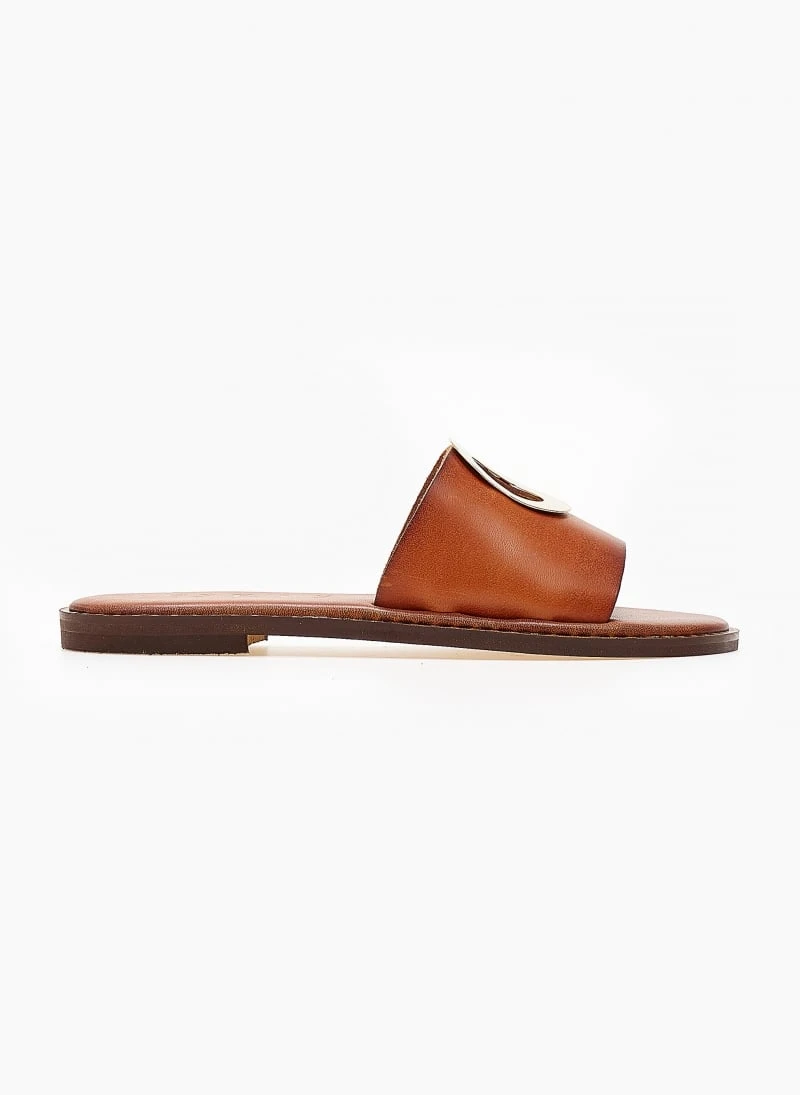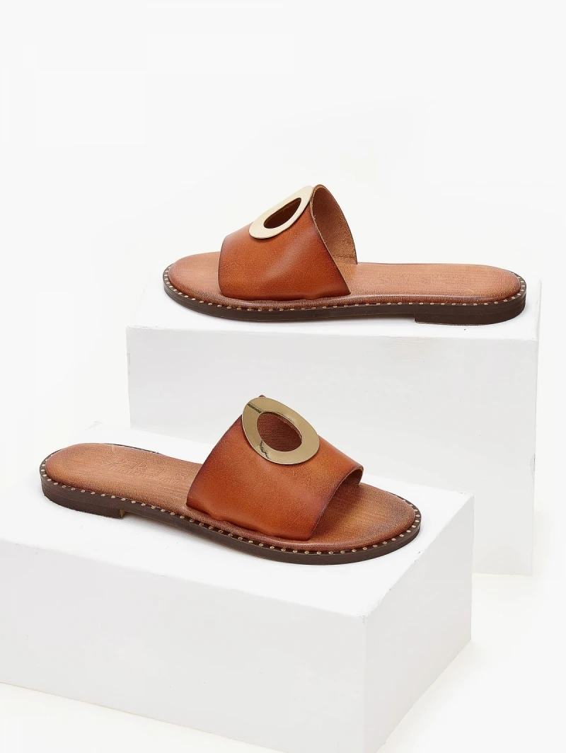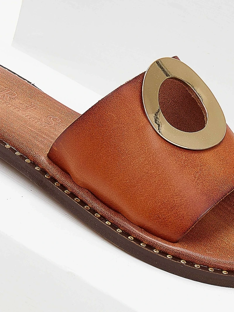 Δερμάτινα σανδάλια IRIS με φαρδιά φάσα. Έχουν μεταλλικό διακοσμητικό με άνοιγμα σε σχήμα κύκλο. Δερμάτινος πάτος με ενίσχυση. Ελληνικής κατασκευής,χειροποίητα.