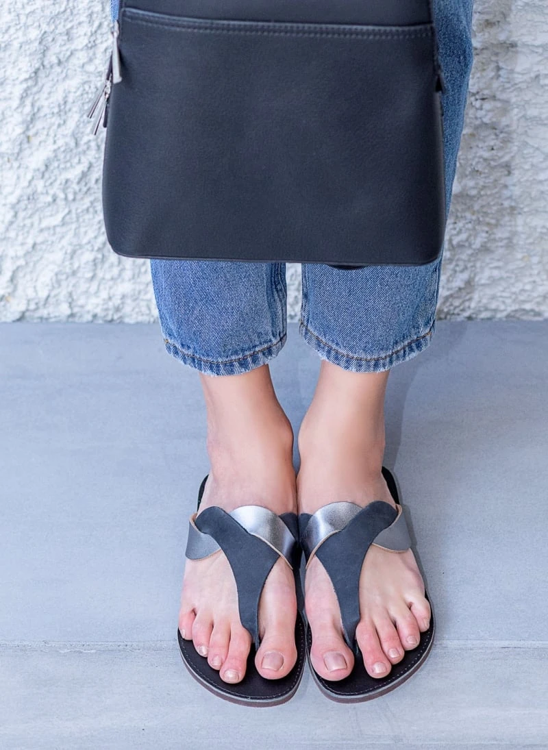 Estil δερμάτινες δίχρωμες σαγιονάρες. Ελληνιής κατασκευής,χειροποίητα.
