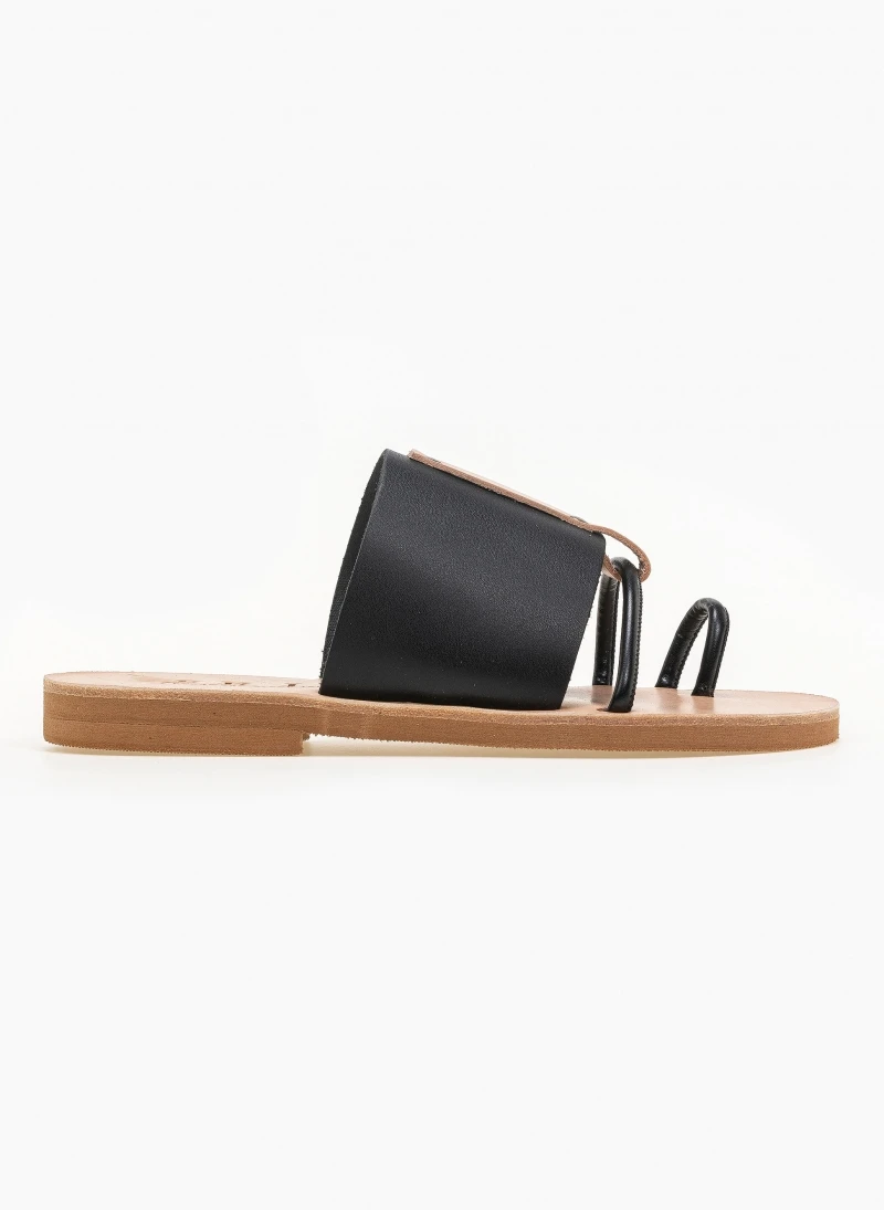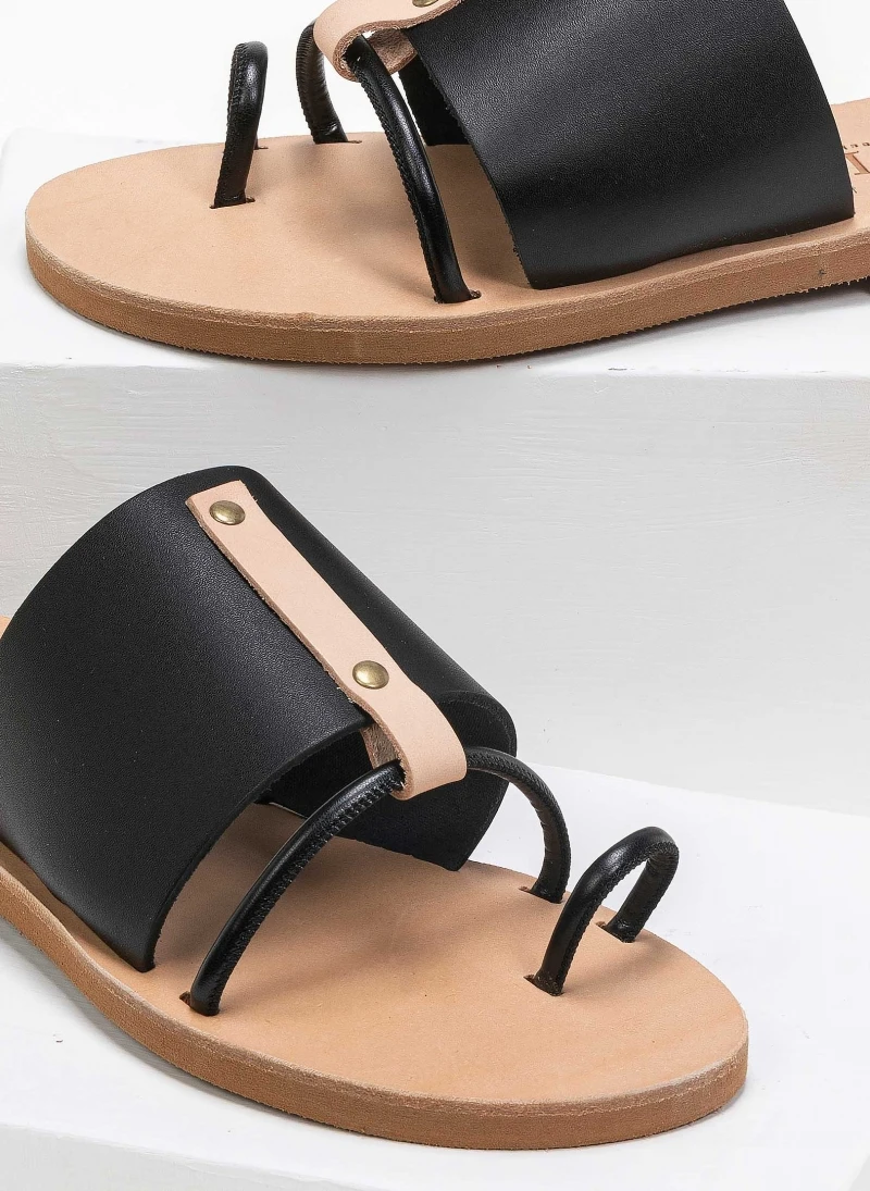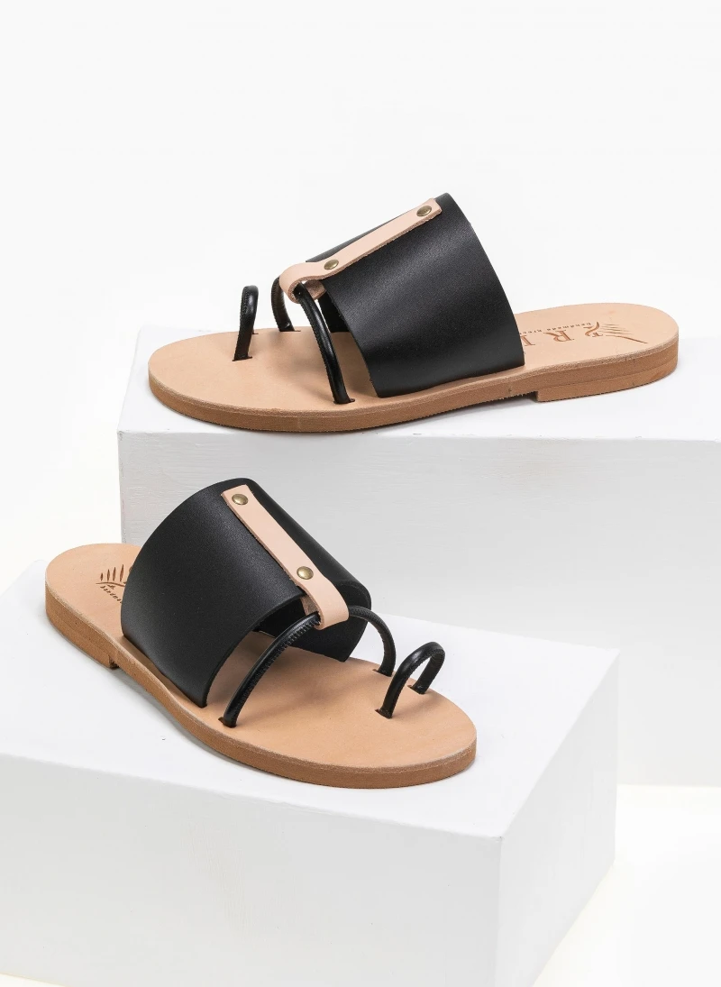 Δερμάτινα σανδάλια με φαρδιά φάσα και διχρωμία. Ελληνικής κατασκευής, χειροποίητα.
