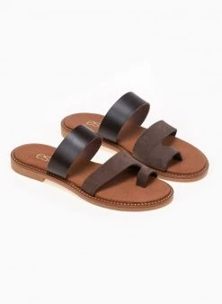 Estil δερμάτινα σανδάλια. Συνδυάζουν ματ και nubuck δέρμα. Ο πάτος είναι δερμάτινος με ενίσχυση. Έχουν λεπτομέρεια μεταλλικό χρώμα περιμετρικά της σόλας. Ελληνικής κατασκευής, χειροποίητα.