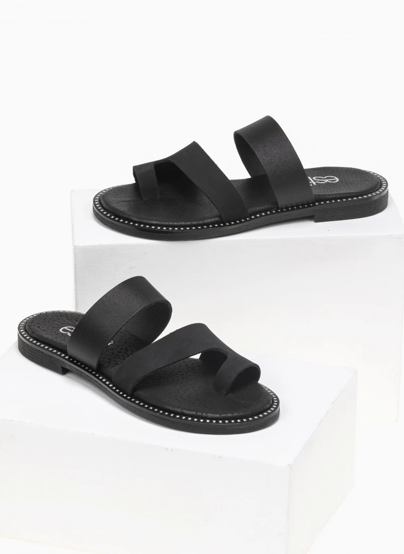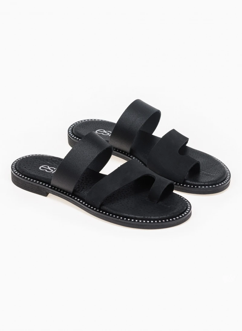 Estil δερμάτινα σανδάλια. Συνδυάζουν ματ και nubuck δέρμα. Ο πάτος είναι δερμάτινος με ενίσχυση. Έχουν λεπτομέρεια μεταλλικό χρώμα περιμετρικά της σόλας. Ελληνικής κατασκευής, χειροποίητα.