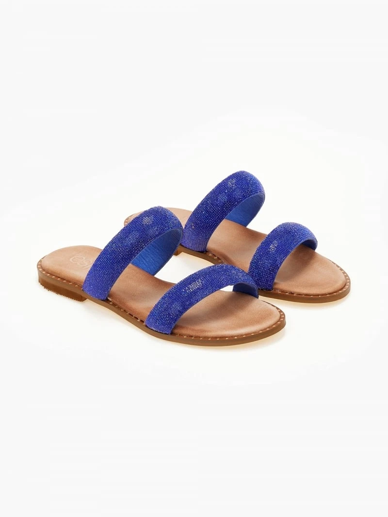 Σανδάλια δερμάτινα ESTIL με δύο strass φάσες. Έχουν λεπτομέρεια μεταλλικό χρώμα περιμετρικάτης σόλας. Δερμάτινος πάτος με ενίσχυση. Ελληνικής κατασκευής.