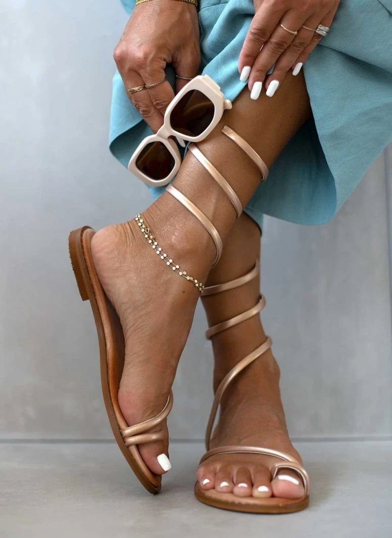 Σανδάλια δερμάτινα ESTIL με έλασμα στη γάμπα. Δερμάτινος πάτος με ενίσχυση. Ελληνικής κατασκευής.