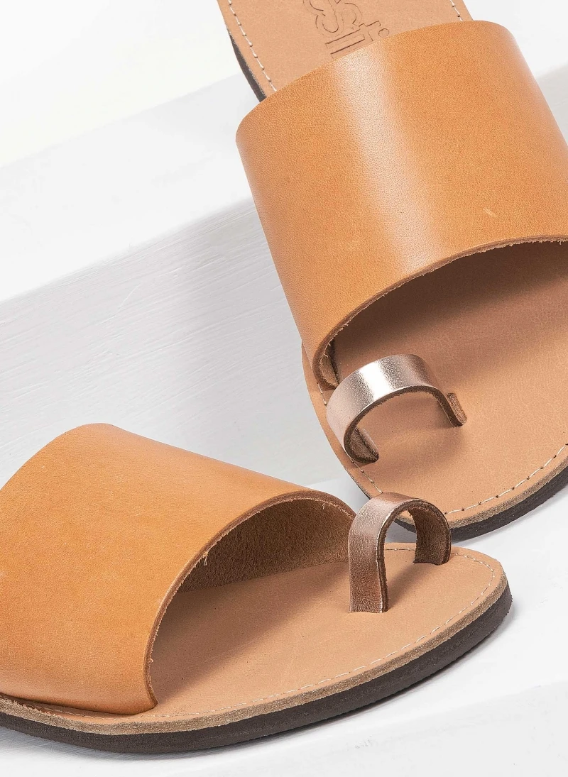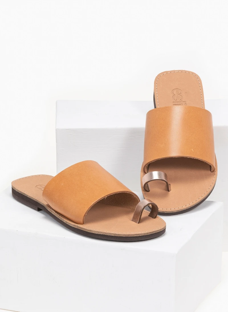 Estil δερμάτινα σανδάλια με φαρδιά φάσα στο κουτεπιέ. Ελληνικής κατασκευής, χειροποίητα.