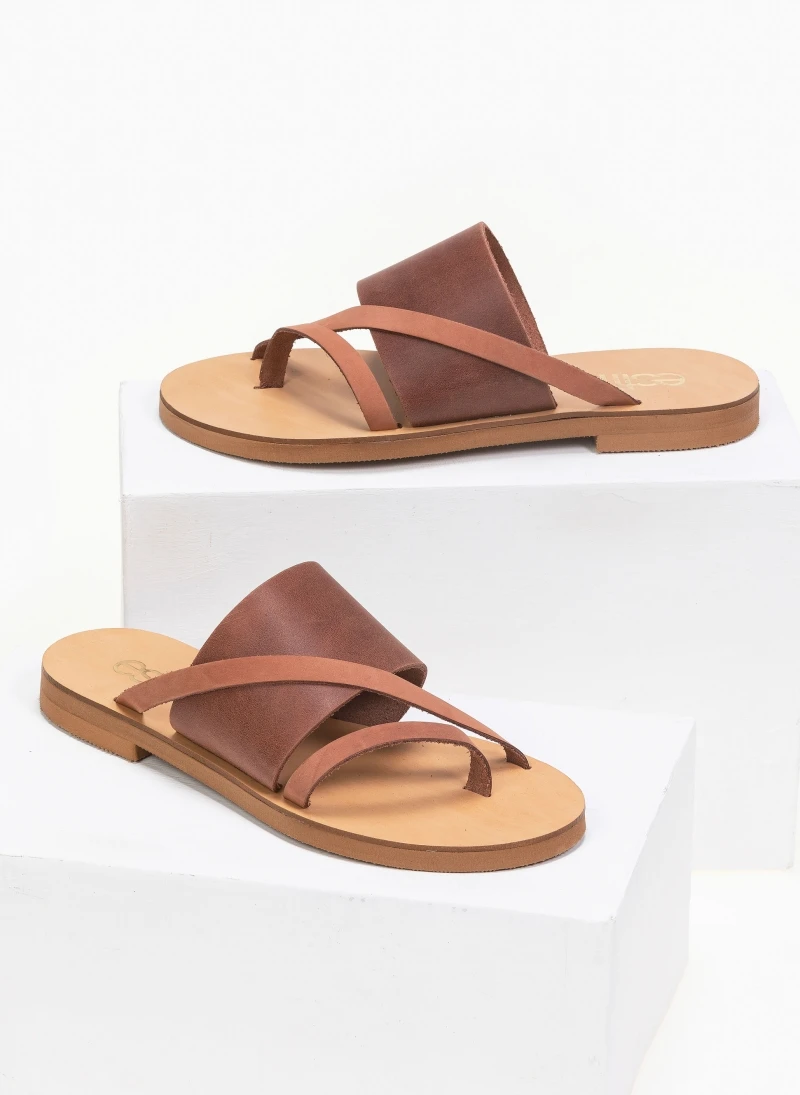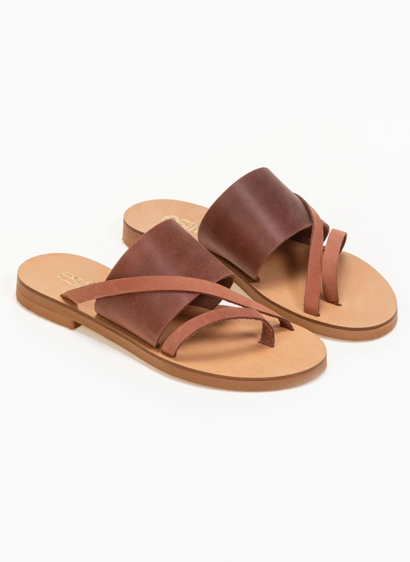 Estil δερμάτινα σανδάλια με φαρδιά φάσα και λουράκια. Ελληνικής κατασκευής, χειροποίητα.