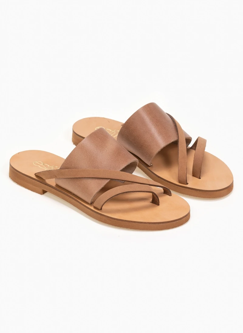 Estil δερμάτινα σανδάλια με φαρδιά φάσα και λουράκια. Ελληνικής κατασκευής, χειροποίητα.