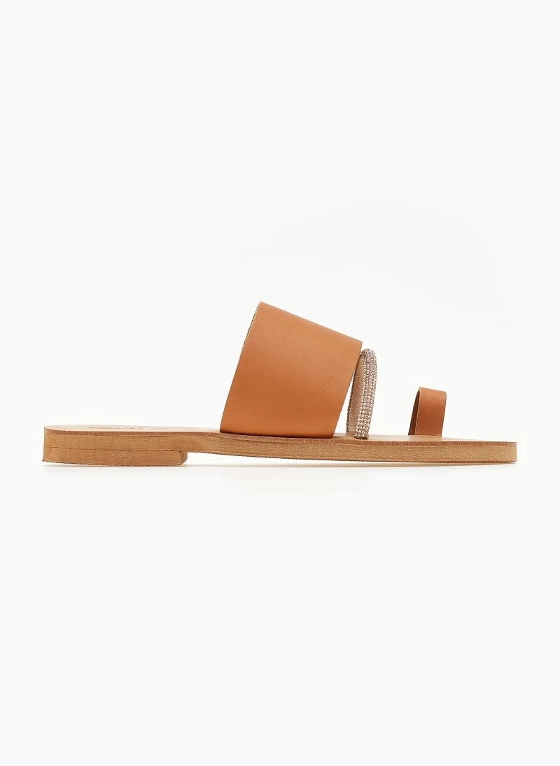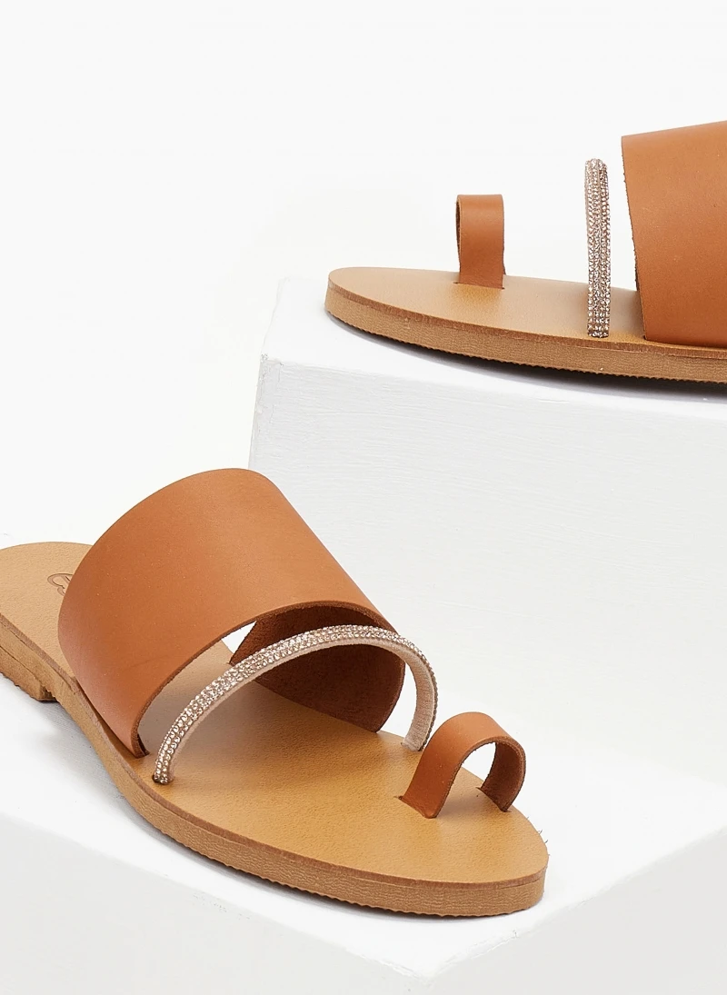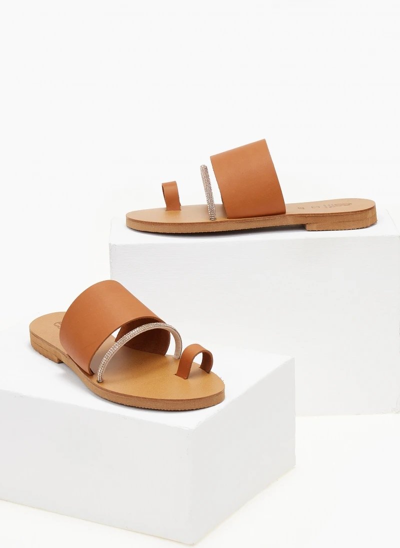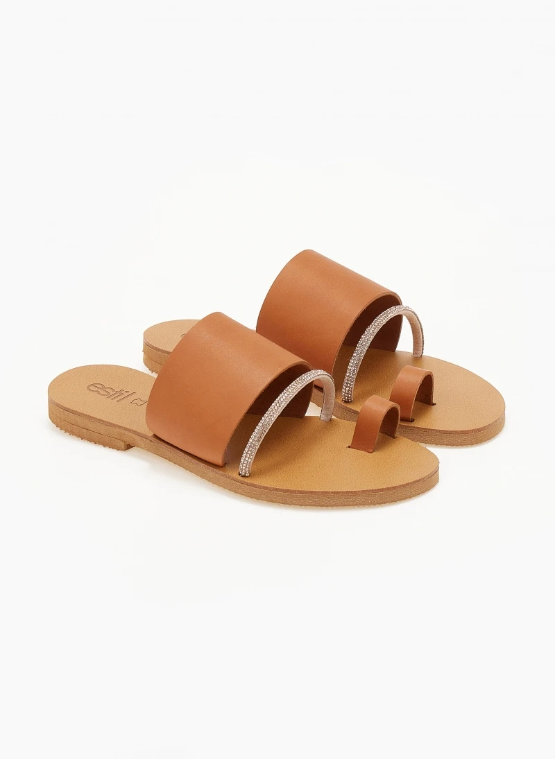 Σανδάλαι δερμάτινα ESTIL με φαρδιά φάσα. Έχουν λεπτομέρεια strass λουράκι. Ελληνικής κατασκευής.