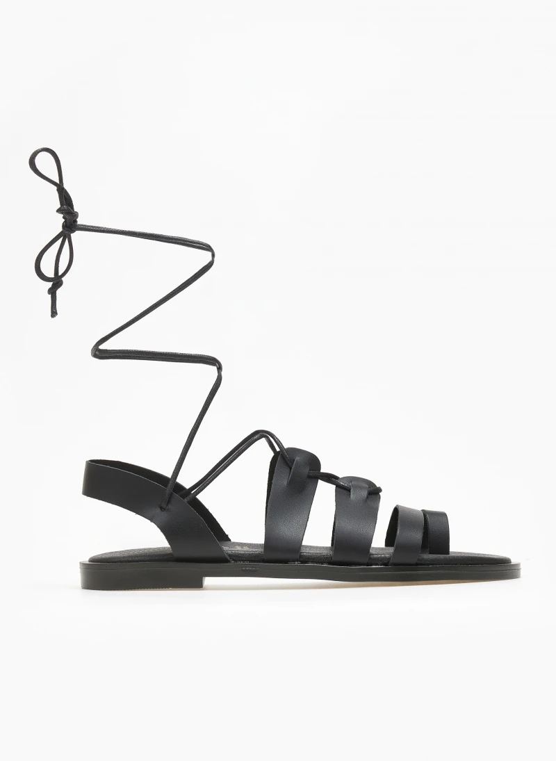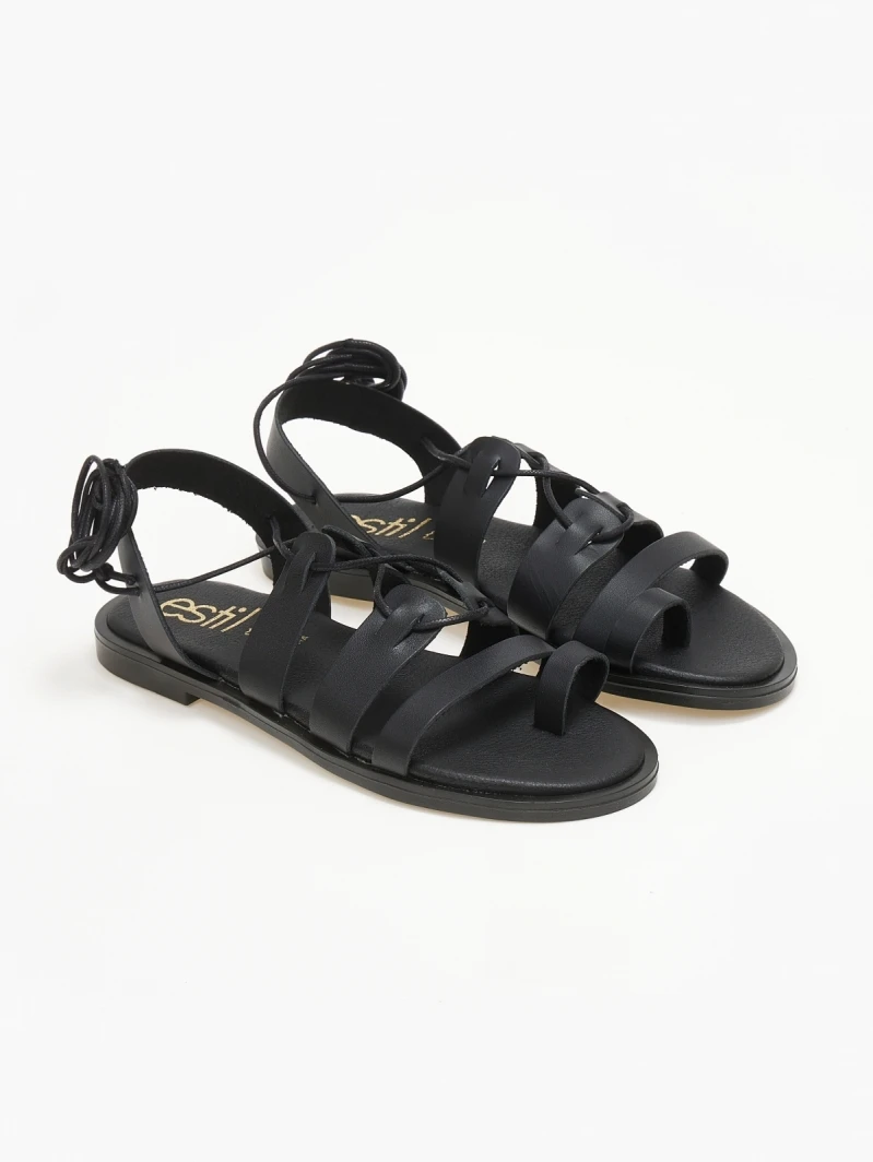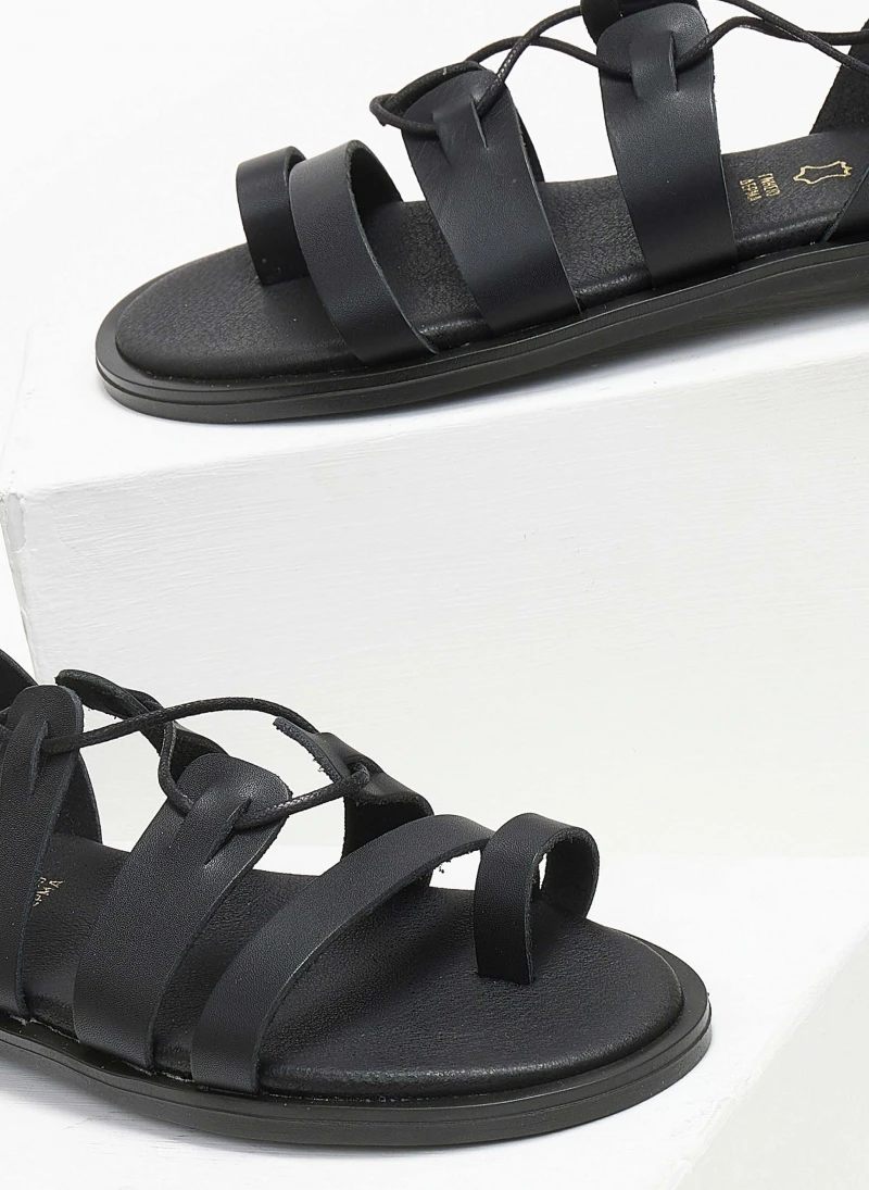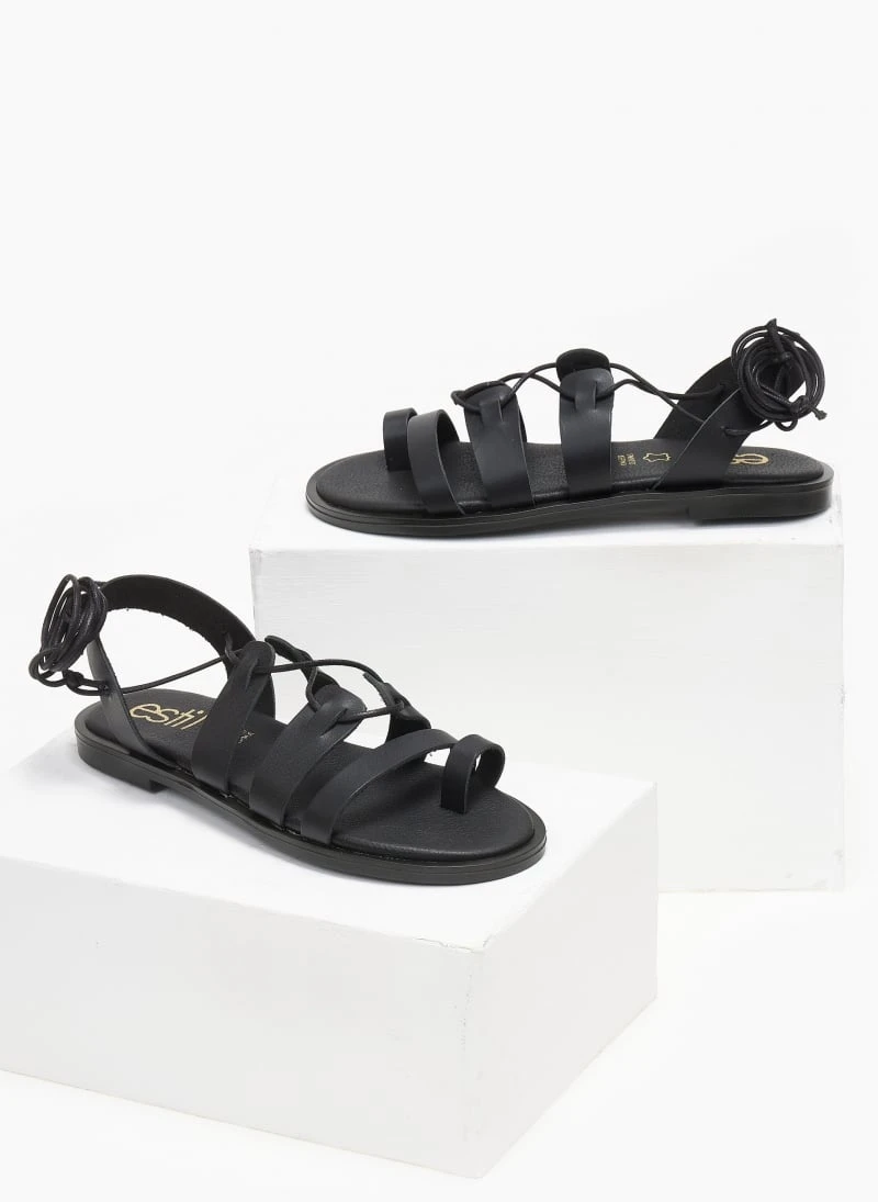 Σανδάλια δερμάτινα estil. Δένουν με κορδόνια στη γάμπα. Δερμάτινος πάτος με ενίσχυση. Ελληνικής κατασκευής.