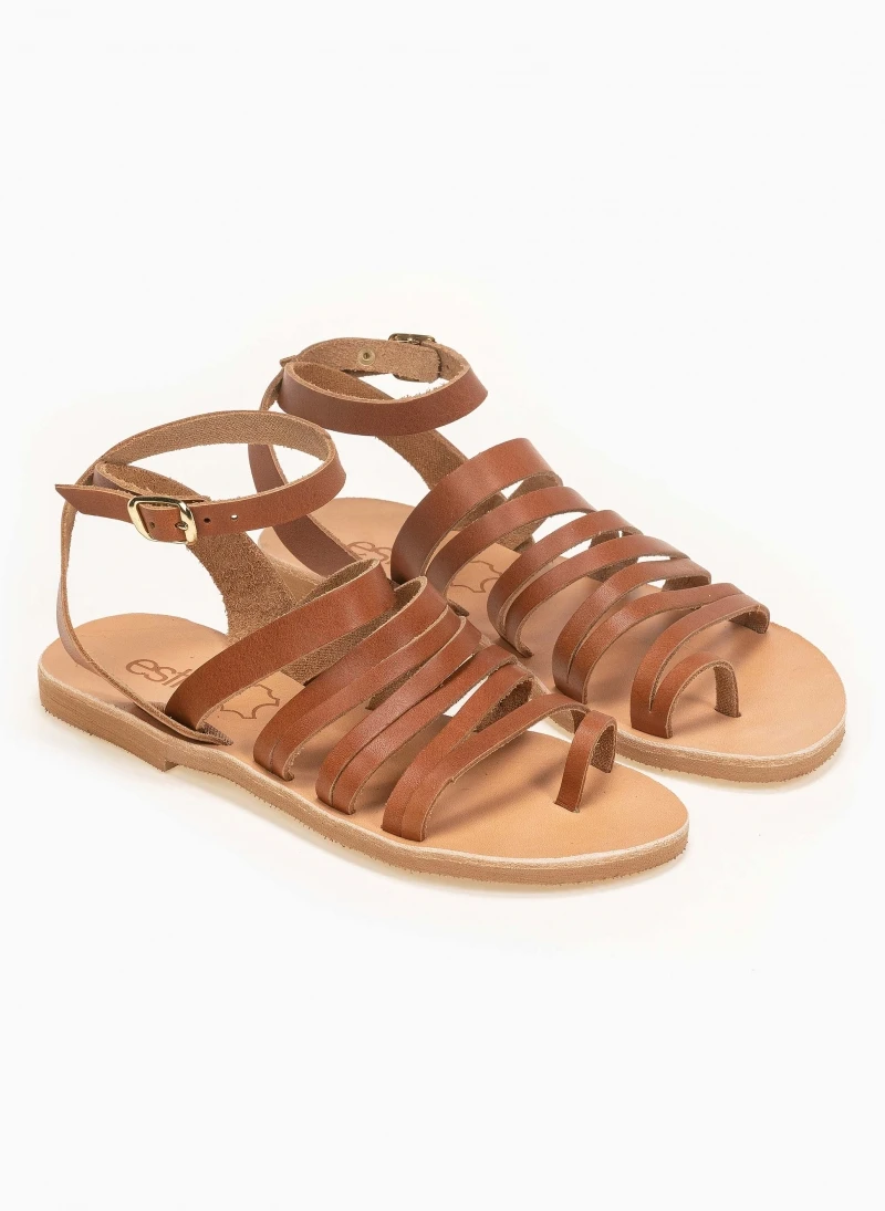 Estil δερμάτινα ίσια πέδιλα με λεπτά λουράκια. Δένουν στο ύψος του αστραγάλου. Ελληνικής κατασκευής, χειροποίητα.
