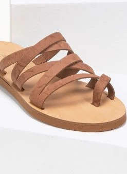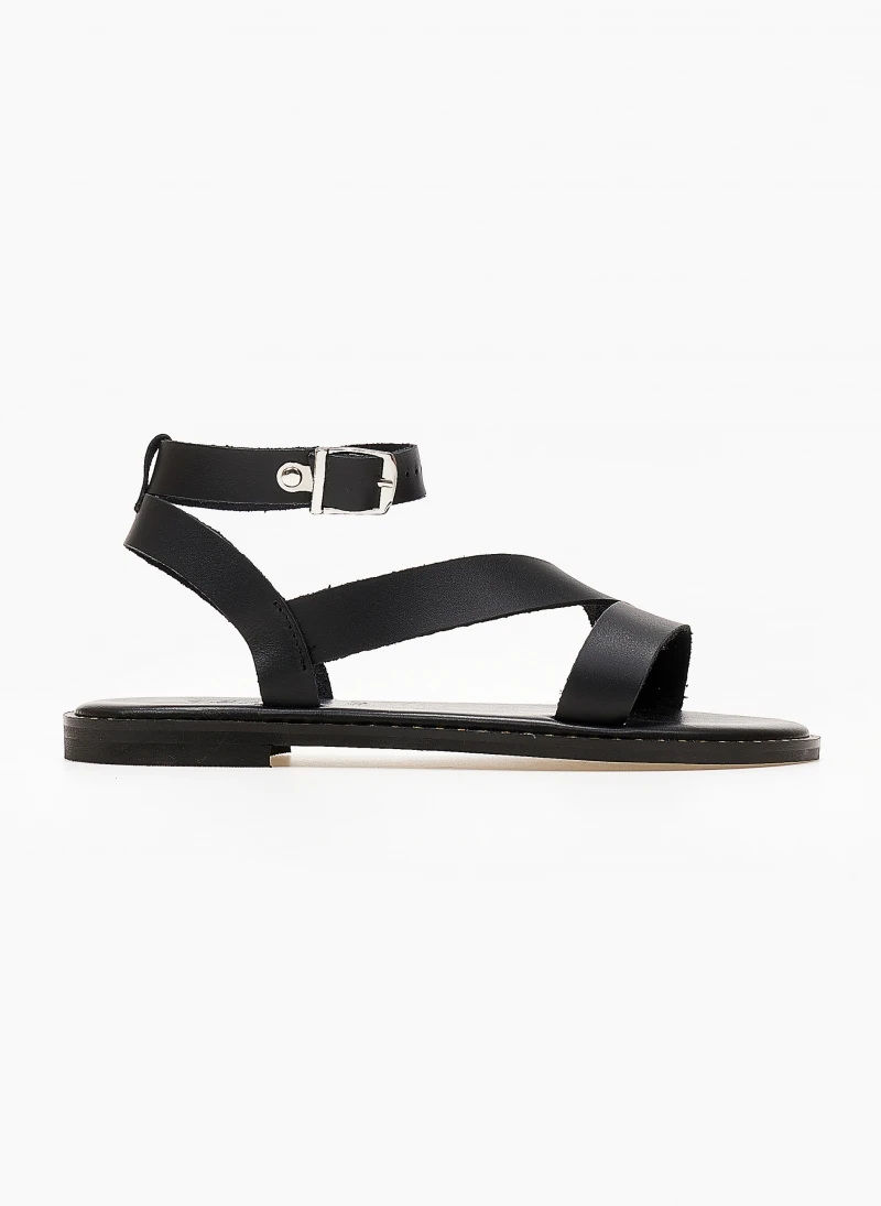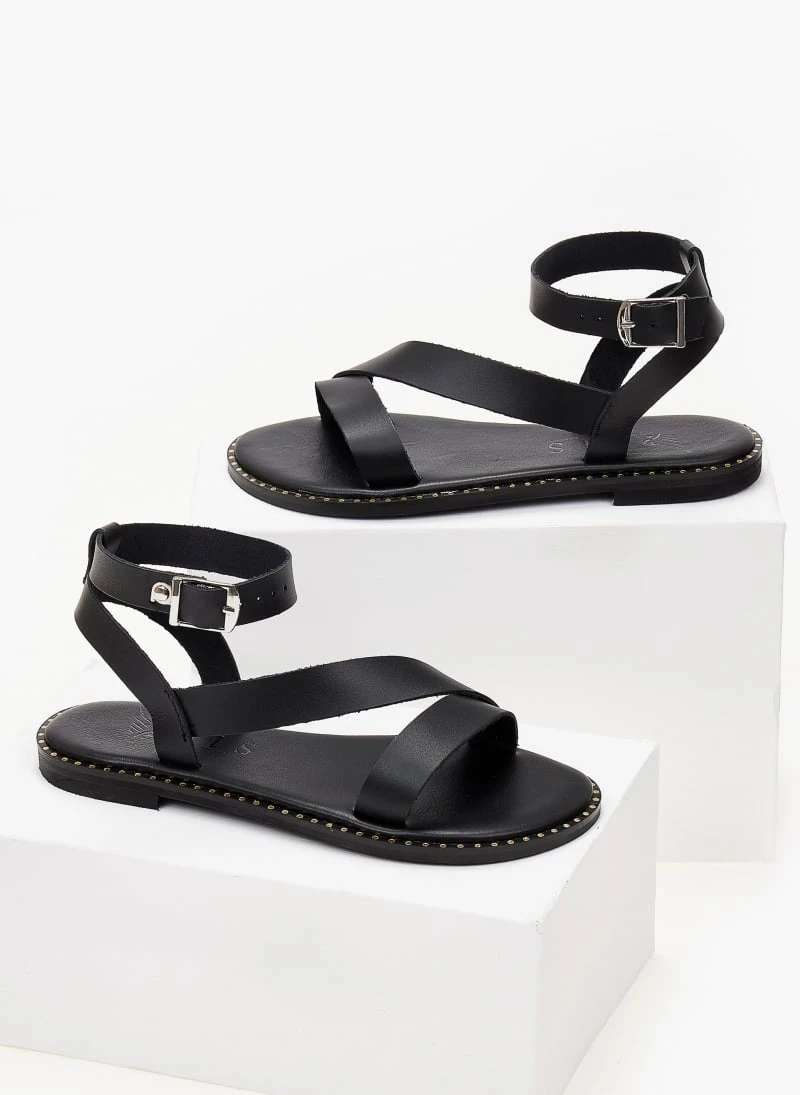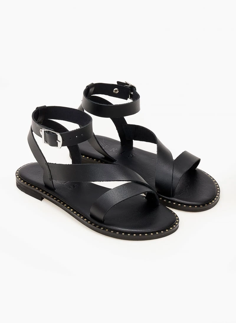 Δερμάτινα σανδάλια IRIS με λοξό λουράκι στο κουτεπιέ. Δένουν με μπαρέτα στο ύψος του αστραγάλου. Δερμάτινος πάτος με ενίσχυση. Ελληνικής κατασκευής,χειροποίητα.