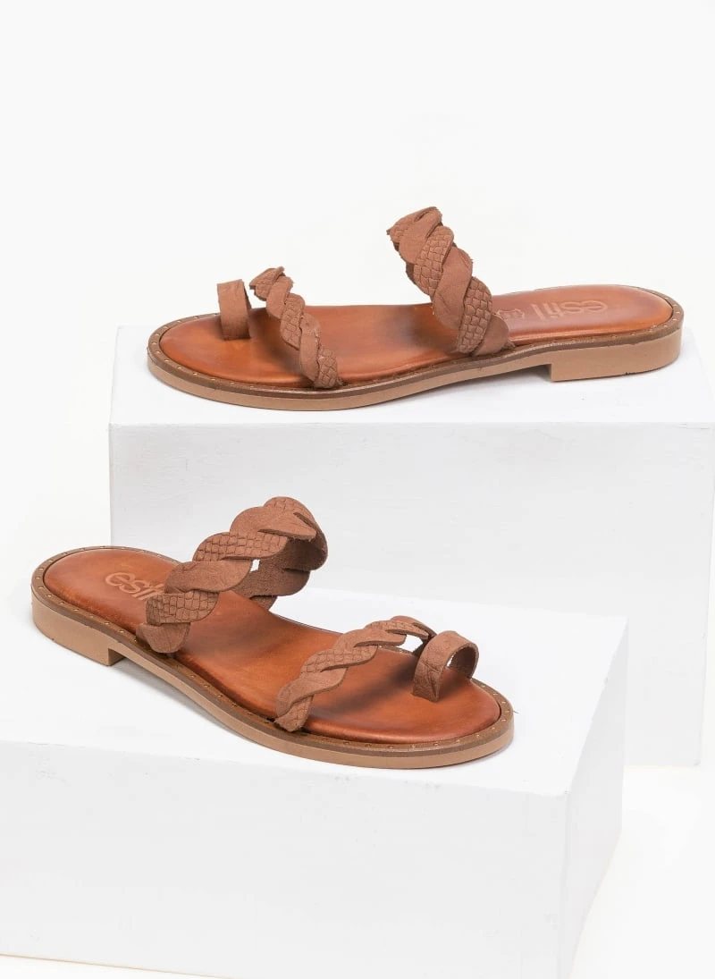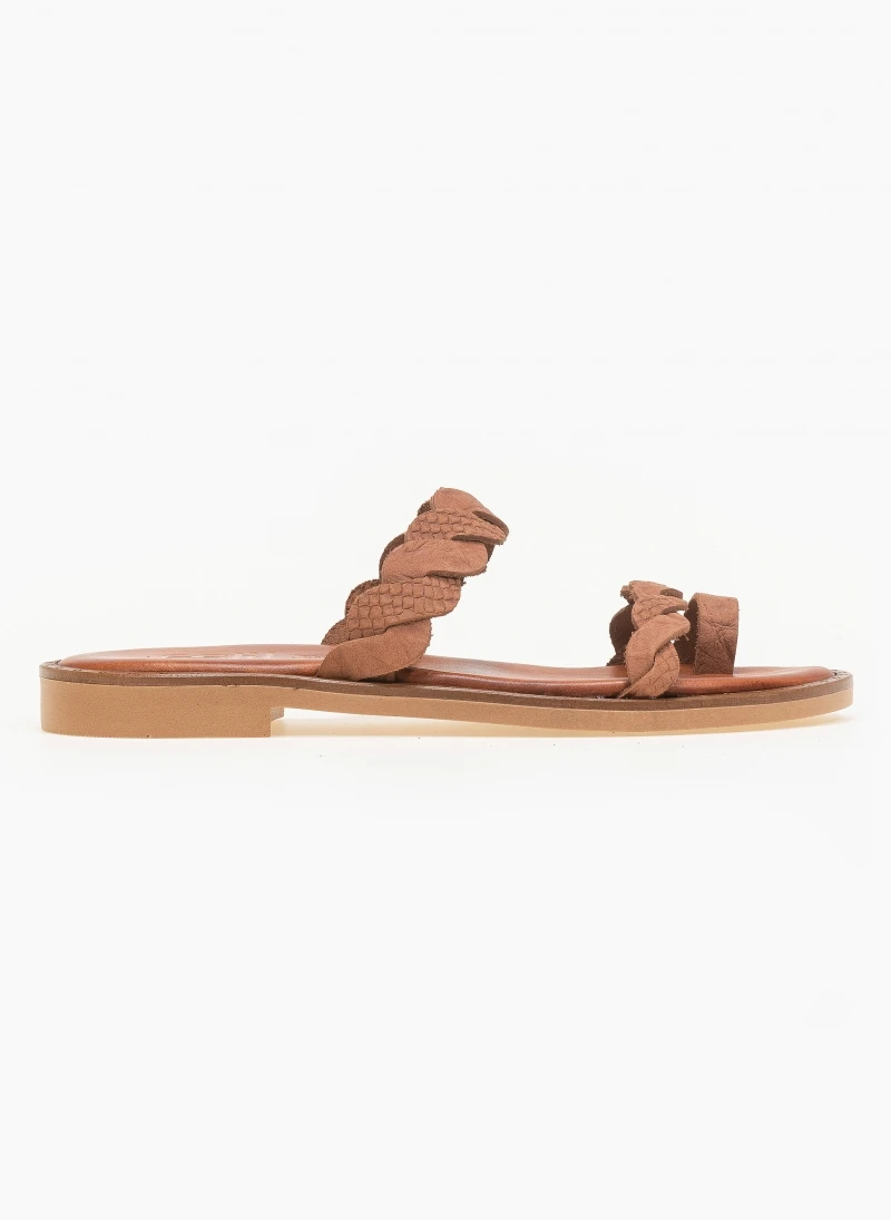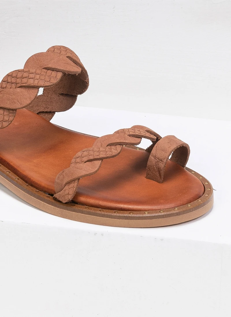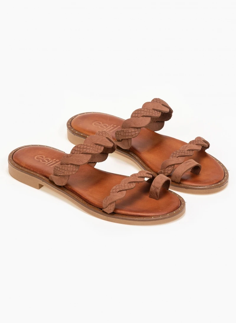 Estil δερμάτινα σανδάλια με πλεγμένα λουράκια και pattern φίδι. Ο πάτος είναι δερμάτινος με ενίσχυση. Ελληνικής κατασκευής, χειροποίητα.