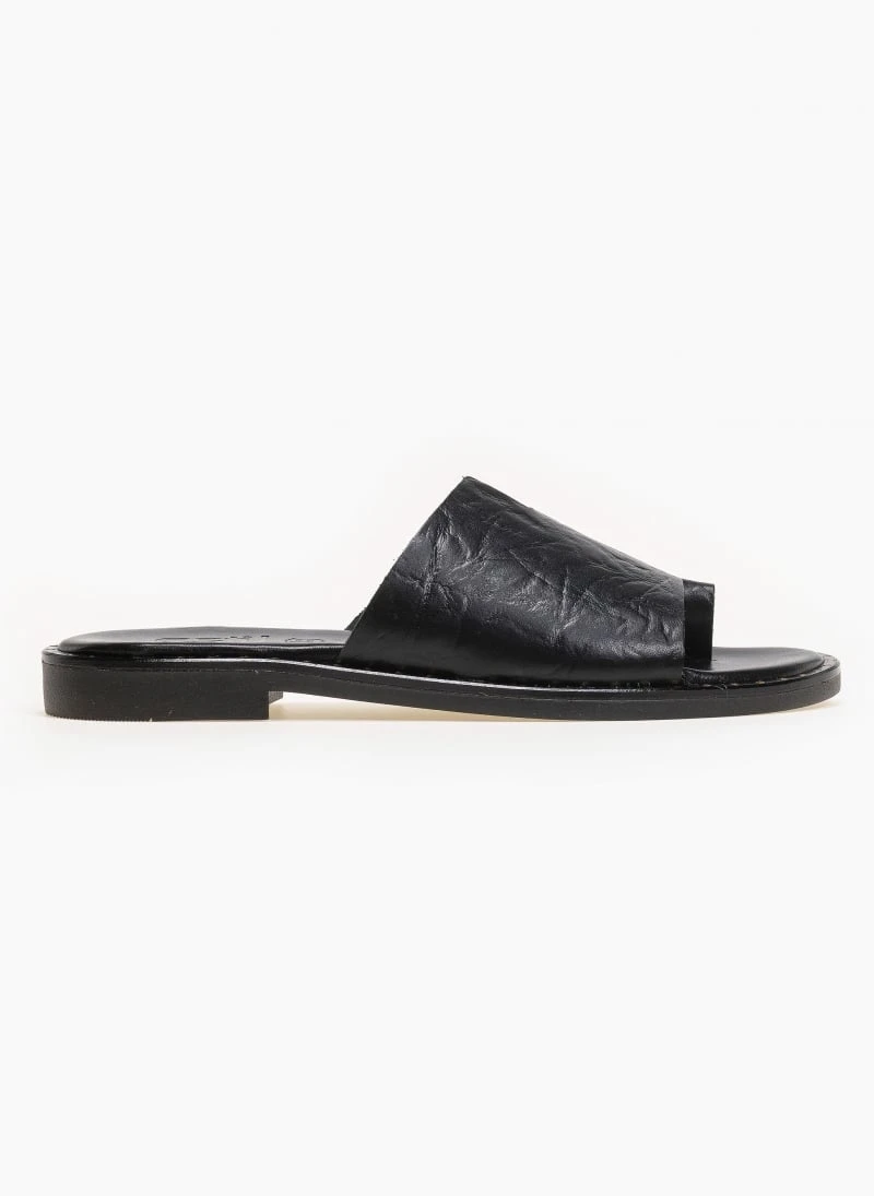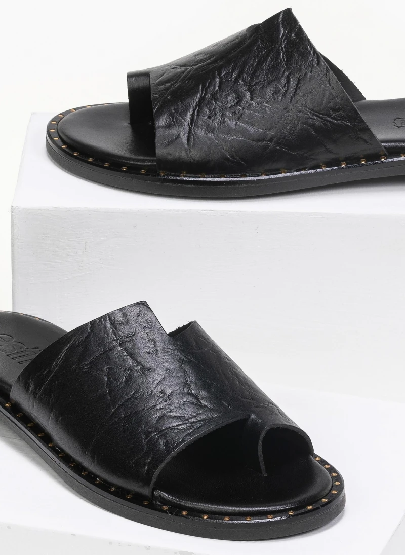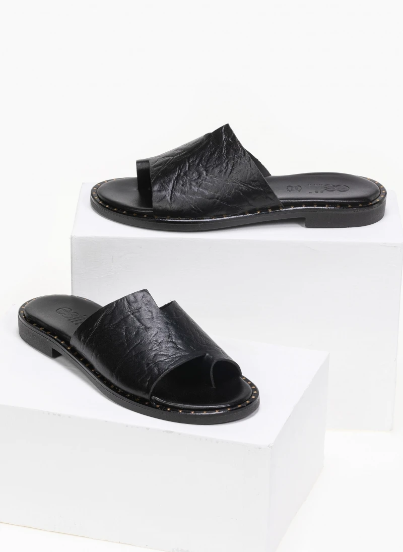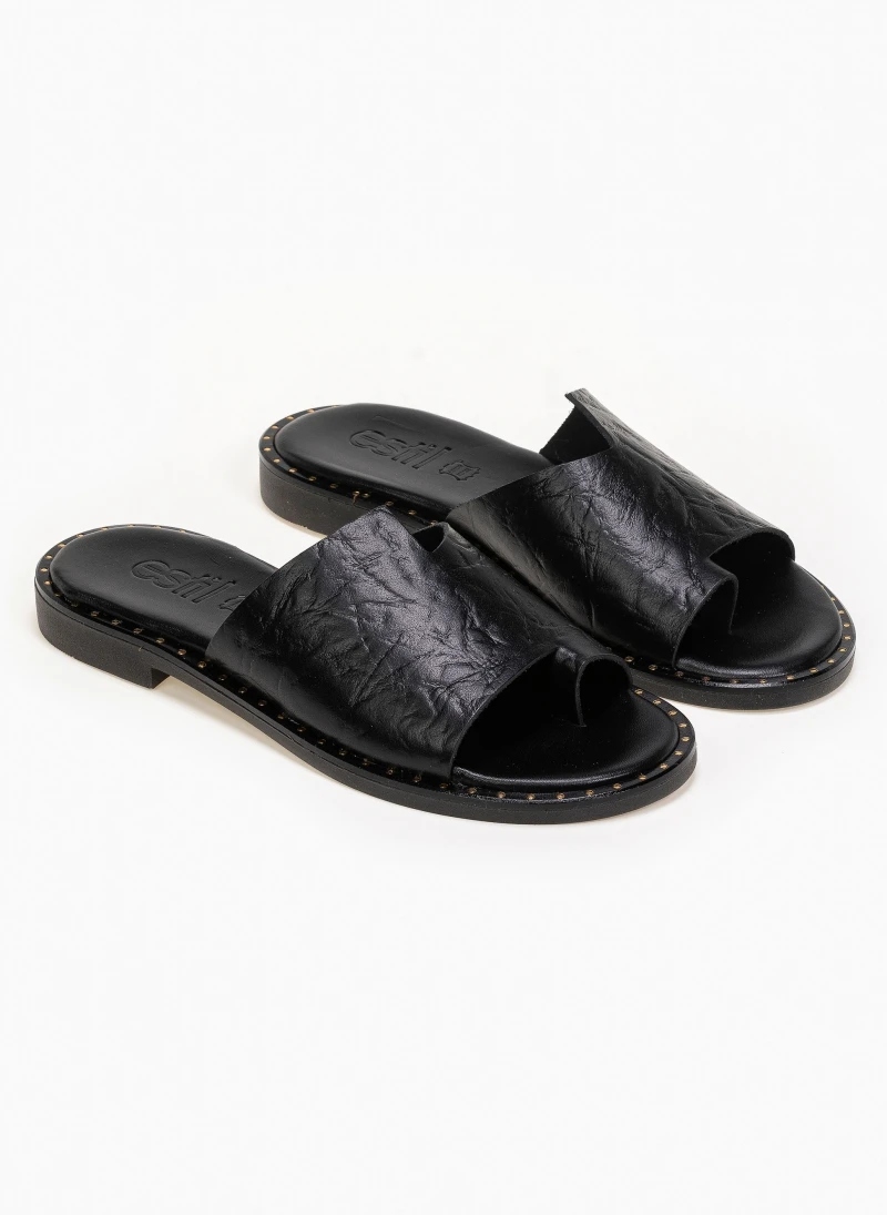 Estil δερμάτινα σανδάλια με φαρδιά φάσα και pattern τσαλακωτό. Έχουν μαλακό δερμάτινο πάτο με ενίσχυση. Ελληνικής κατασκευής, χειροποίητα.