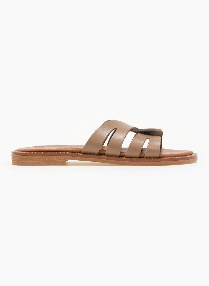Estil δερμάτινα σανδάλια με περαστές φάσες. Έχουν δερμάτινο πάτο με ενίσχυση. Η σολα είναι μαλακή από λάστιχο και έχει λεπτομέρειες σε χρυσό χρώμα. Ελληνικής κατασκευής, χειροποίητα.