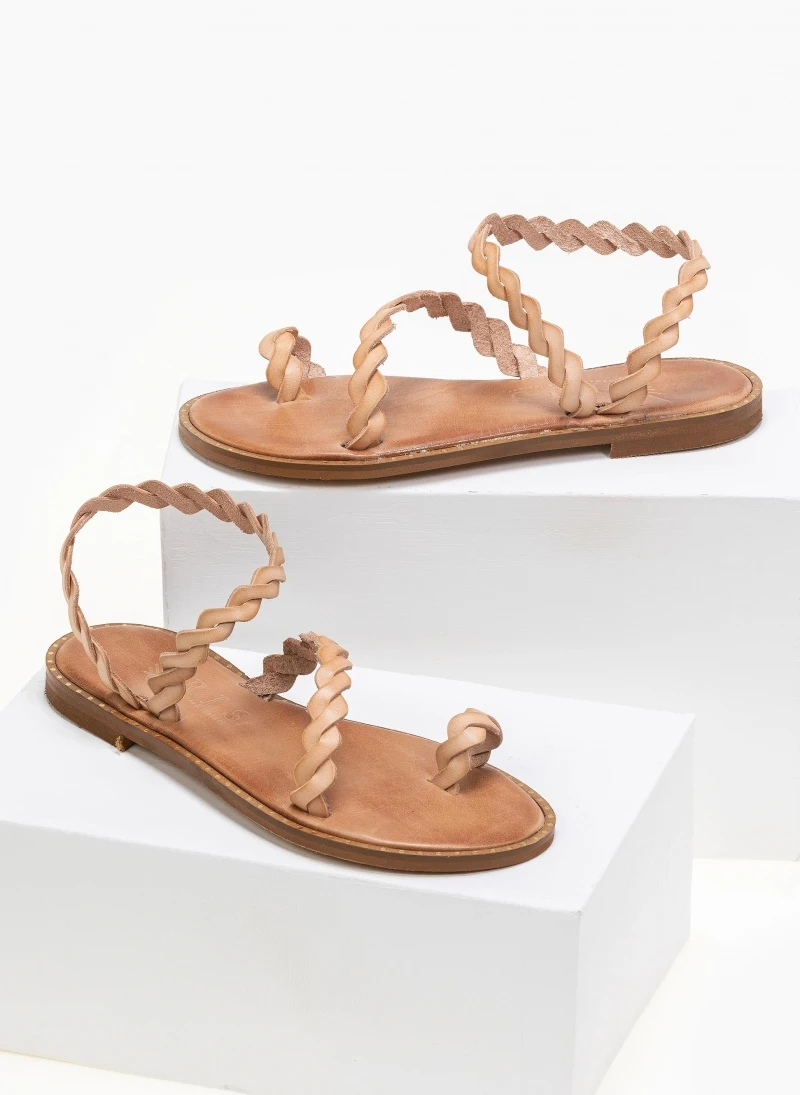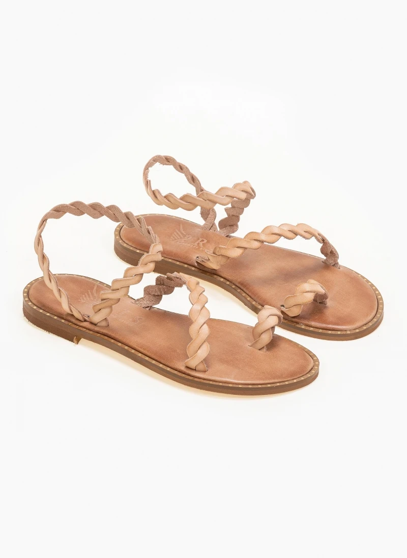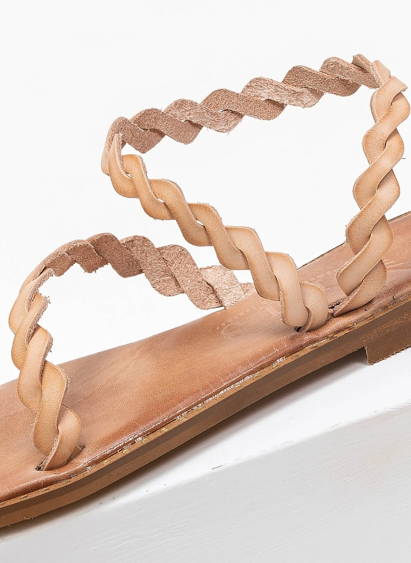 Δερμάτινα ίσια πέδιλα με περαστό λουράκι στον αστράγαλο. Ο πάτος είναι δερμάτινος με ενίσχυση. Ελληνικής κατασκευής, χειροποίητα.
