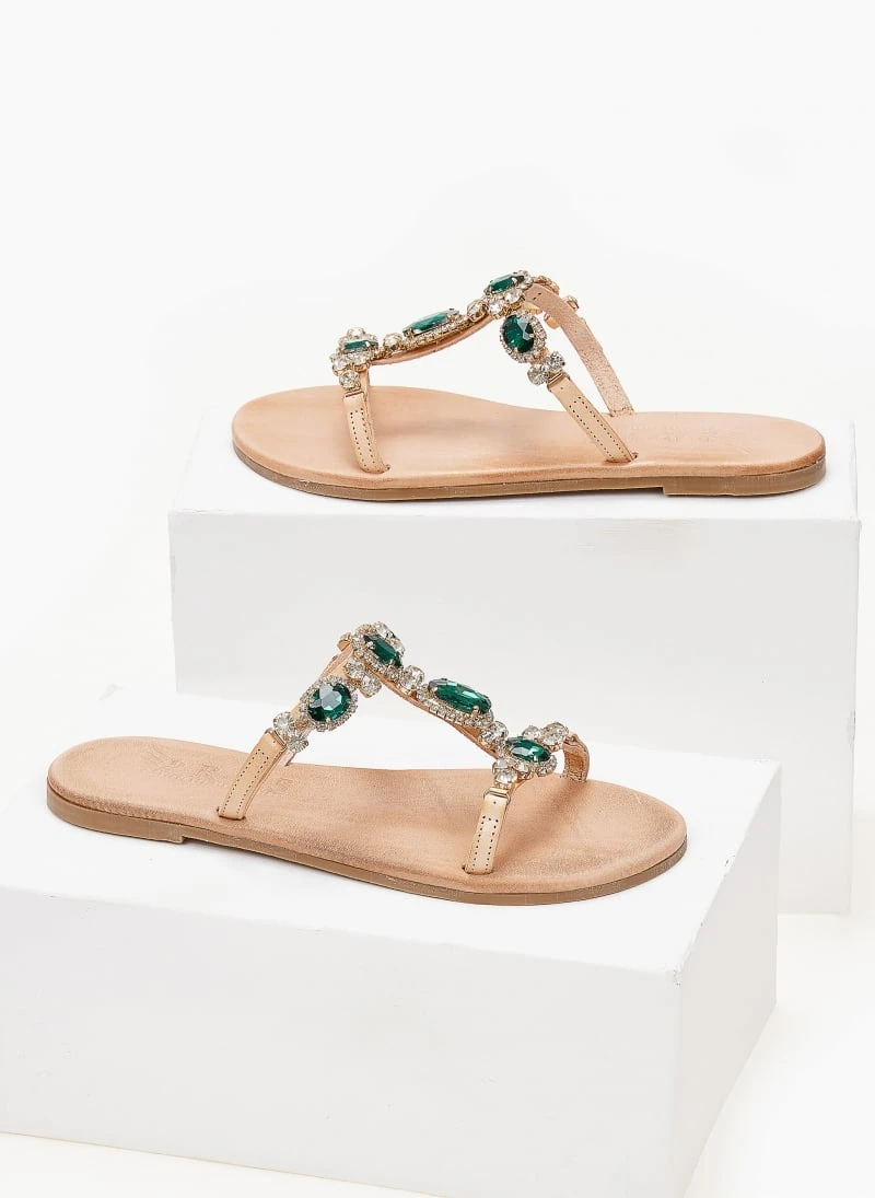 Σανδάλια δερμάτινα IRIS με λεπτά λουράκια.Έχουν σχέδιο με πέτρες και strass. Δερμάτινος πάτος. Χειροποίητα,ελληνικής κατασκευής.