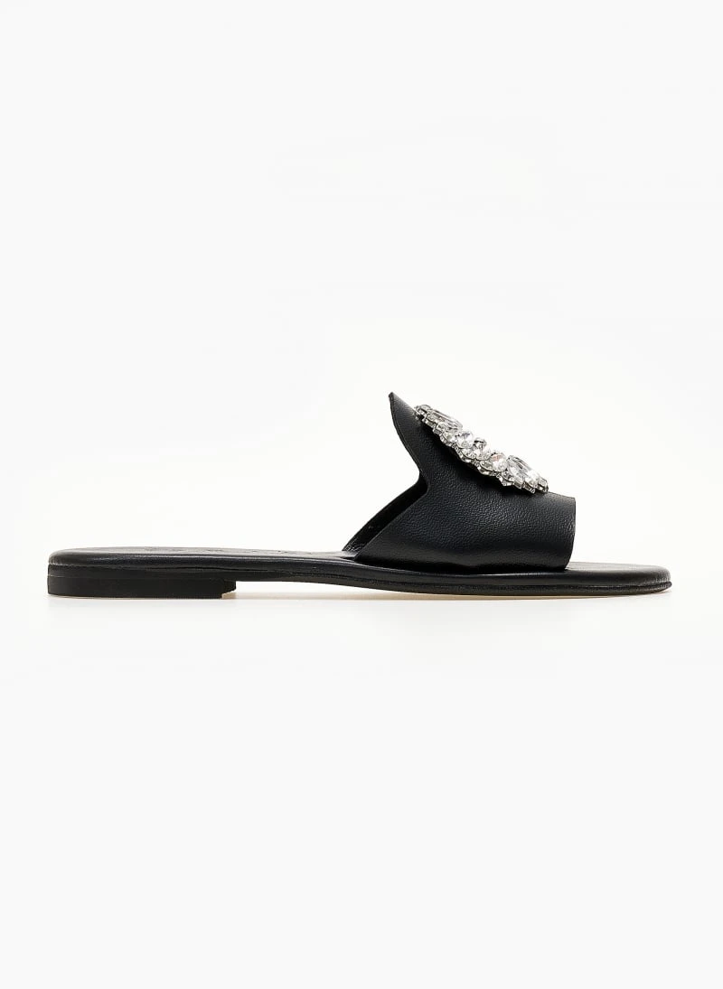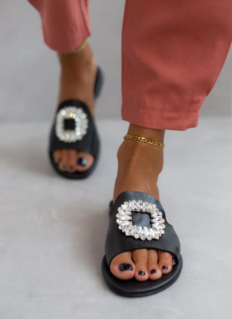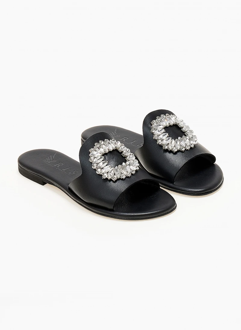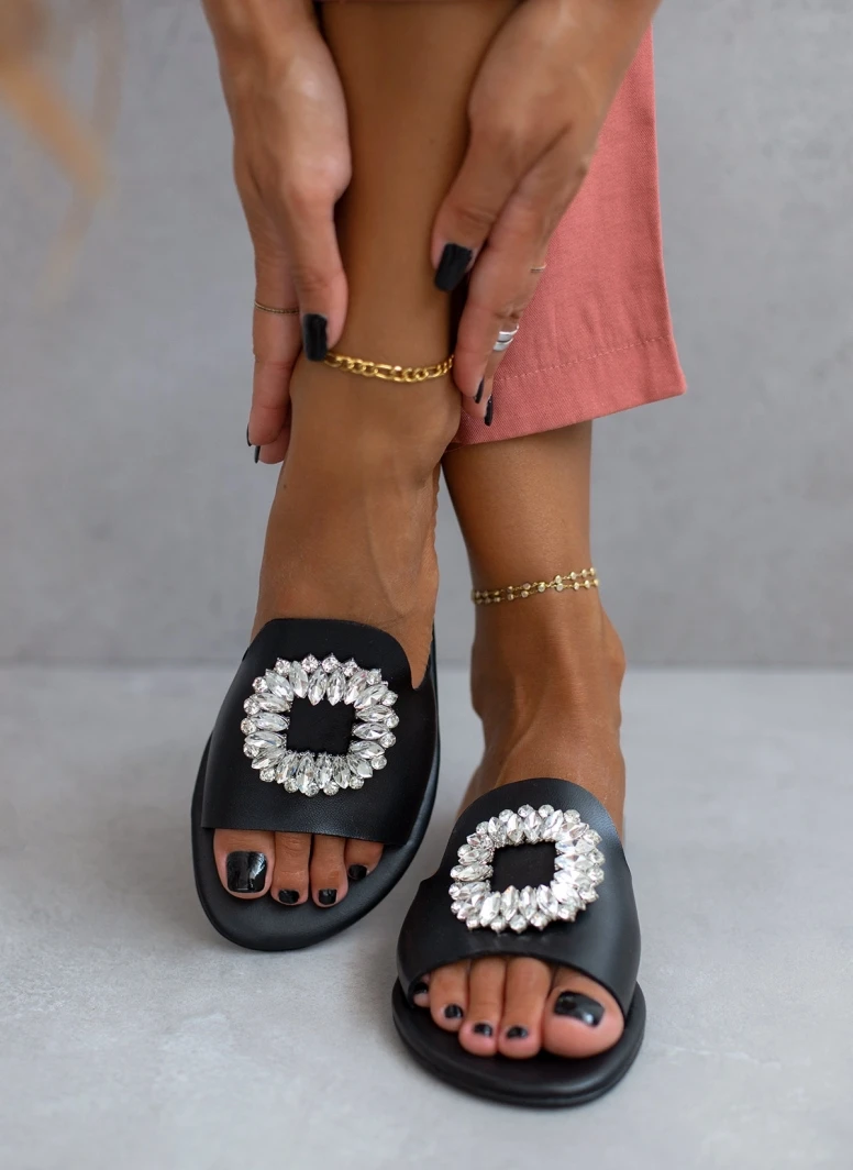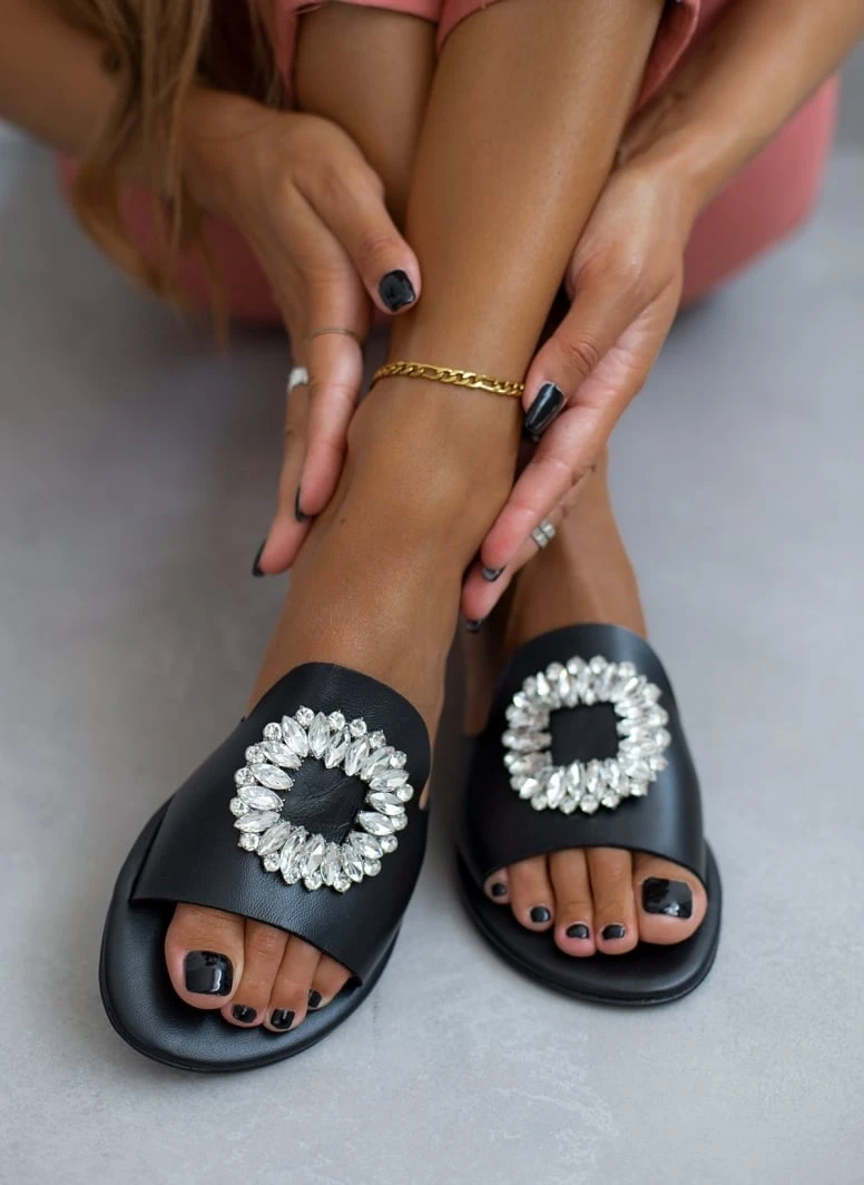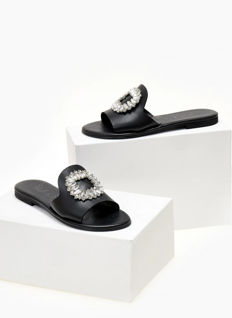 Σανδάλια δερμάτινα με φαρδιά φάσα. Έχουν μεγάλο διακοσμητικό με πέτρες. Δερμάτινος πάτος με ενίσχυση. Ελληνικής κατασκευής.