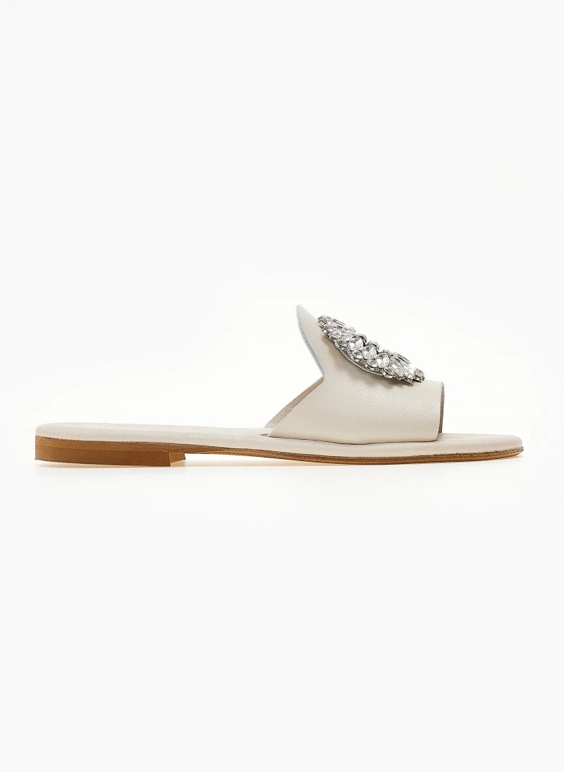 Σανδάλια δερμάτινα με φαρδιά φάσα. Έχουν μεγάλο διακοσμητικό με πέτρες. Δερμάτινος πάτος με ενίσχυση. Ελληνικής κατασκευής.
