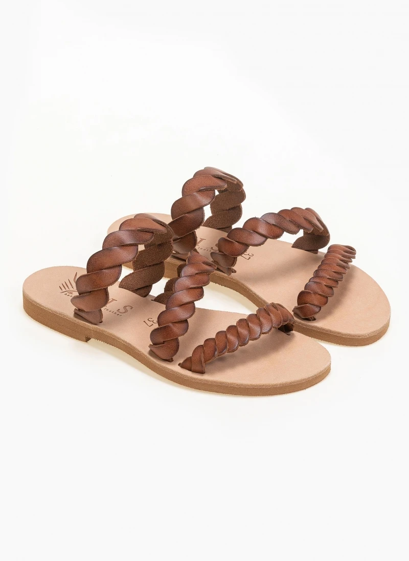 Δερμάτινα σανδάλια με πλεγμένα λουράκια. Ελληνικής κατασκευής, χειροποίητα.