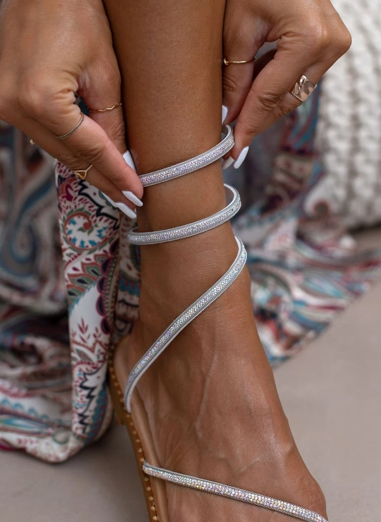 Σανδάλια δερμάτινα ESTIL. Έχουν έλασμα με strass στο ύψος της γάμπας. Λεπτομέρεια μεταλλικό χρώμα περιμετρικά της σόλα. Δερμάτινος πάτος με ενίσχυση. Ελληνικής κατασκευής.