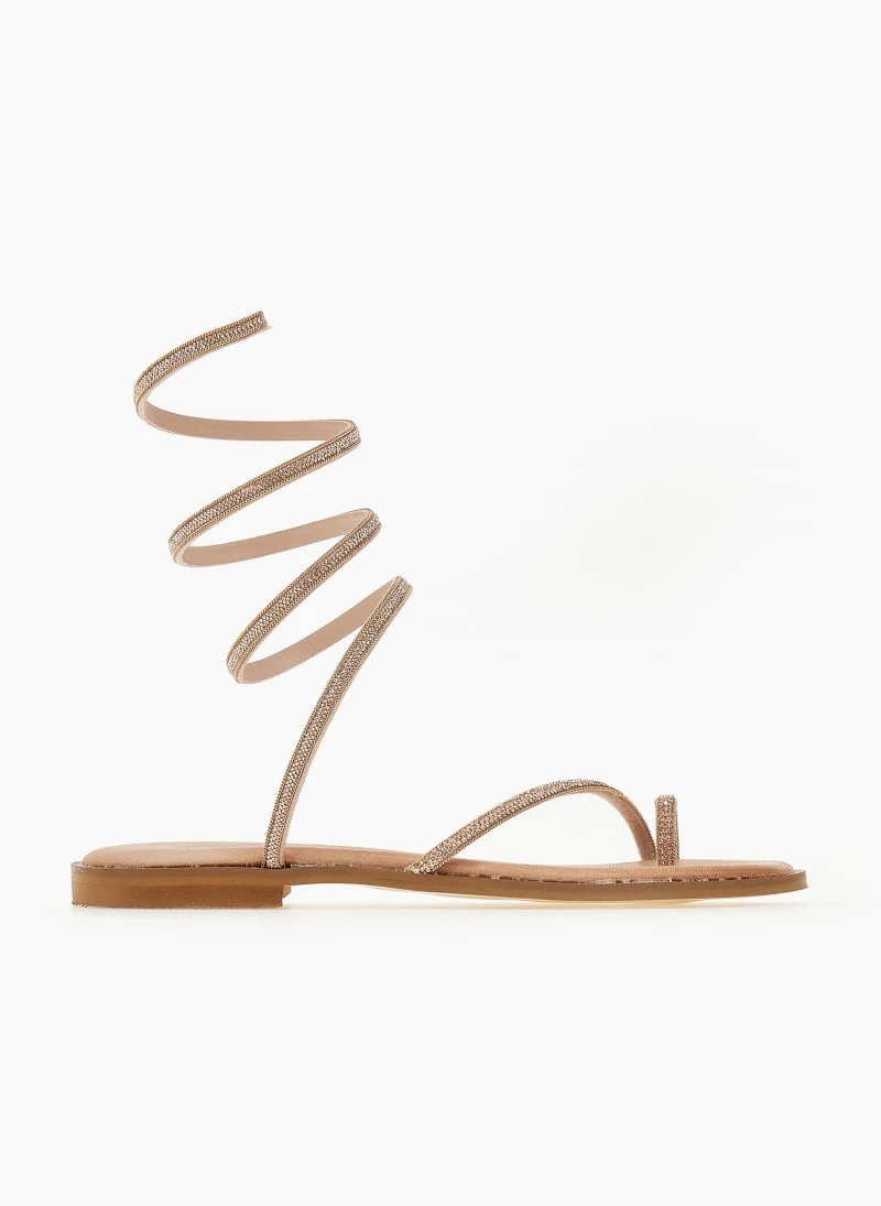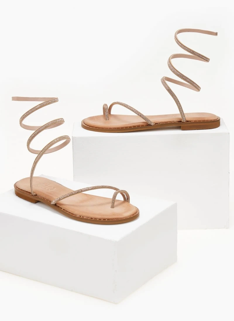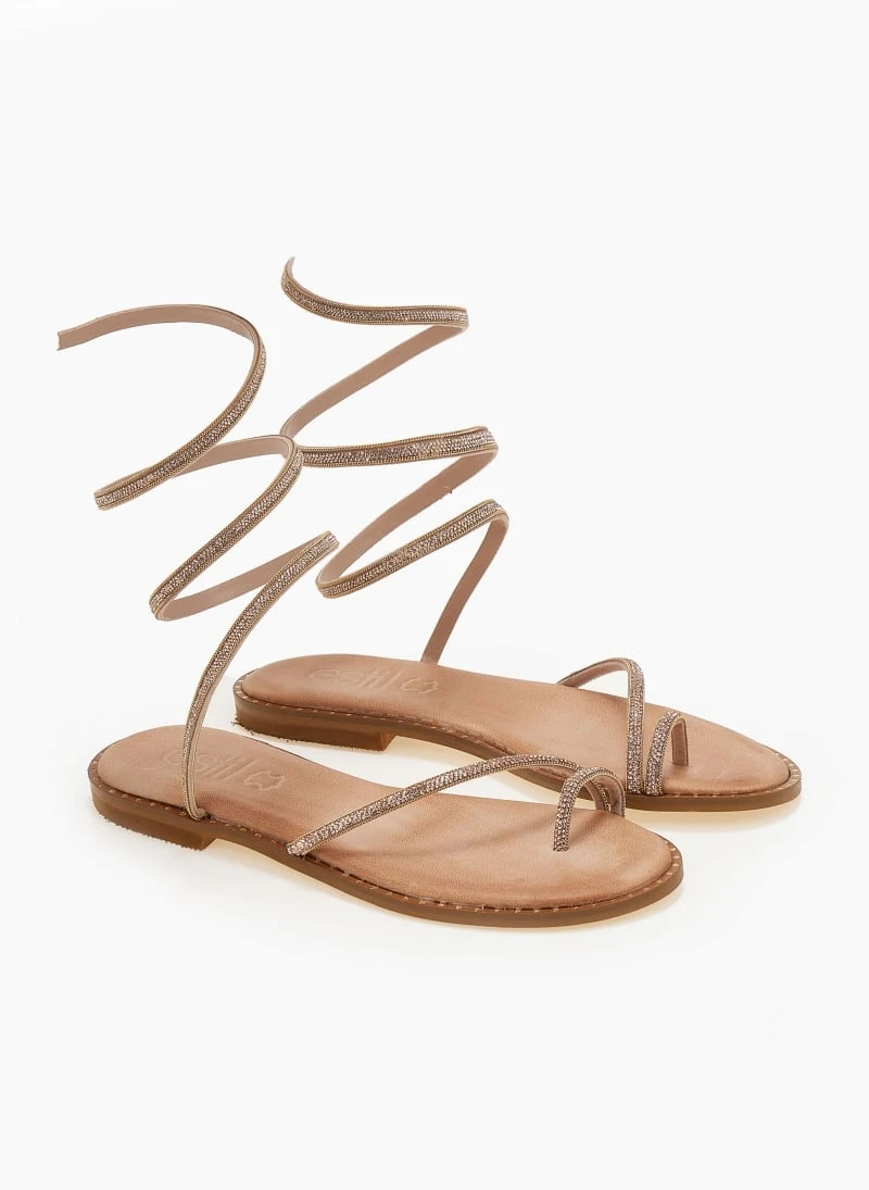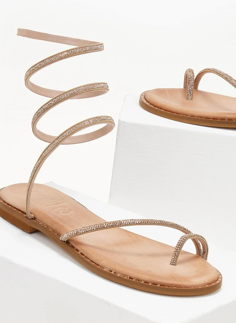 Σανδάλια δερμάτινα ESTIL. Έχουν έλασμα με strass στο ύψος της γάμπας. Λεπτομέρεια μεταλλικό χρώμα περιμετρικά της σόλα. Δερμάτινος πάτος με ενίσχυση. Ελληνικής κατασκευής.