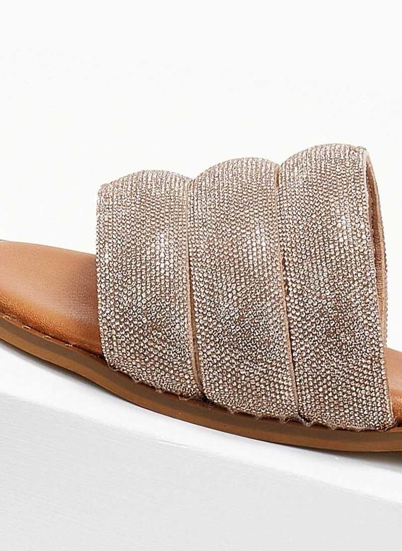 Σανδάλια δερμάτινα ESTIL με φαρδιά strass φάσα. Έχουν λεπτομέρεια μεταλλικό χρώμα περιμετρικά της σόλας. Δερμάτινος πάτος με ενίσχυση. Ελληνικής κατασκευής.