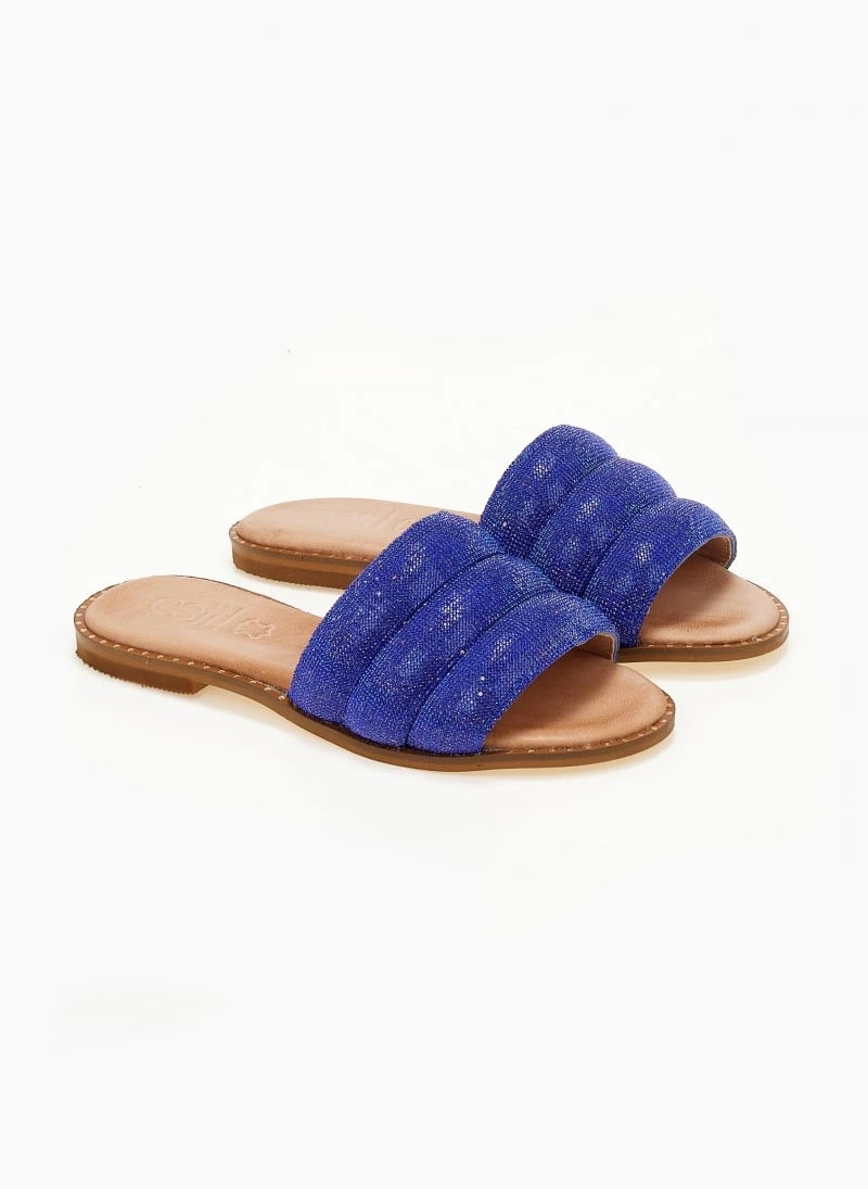 Σανδάλια δερμάτινα ESTIL με φαρδιά strass φάσα. Έχουν λεπτομέρεια μεταλλικό χρώμα περιμετρικά της σόλας. Δερμάτινος πάτος με ενίσχυση. Ελληνικής κατασκευής.