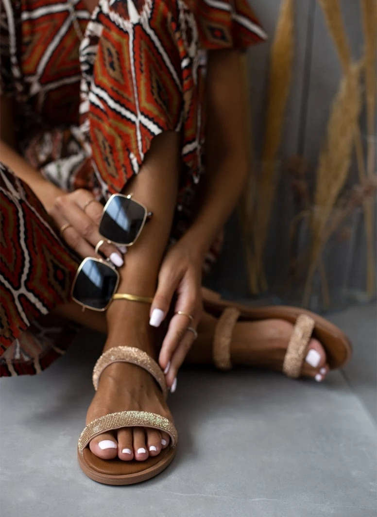Σανδάλια δερμάτινα TFP με strass φάσες. Έχουν μαλακό δερμάτινο πάτο με ενίσχυση. Ελληνικής κατασκευής.